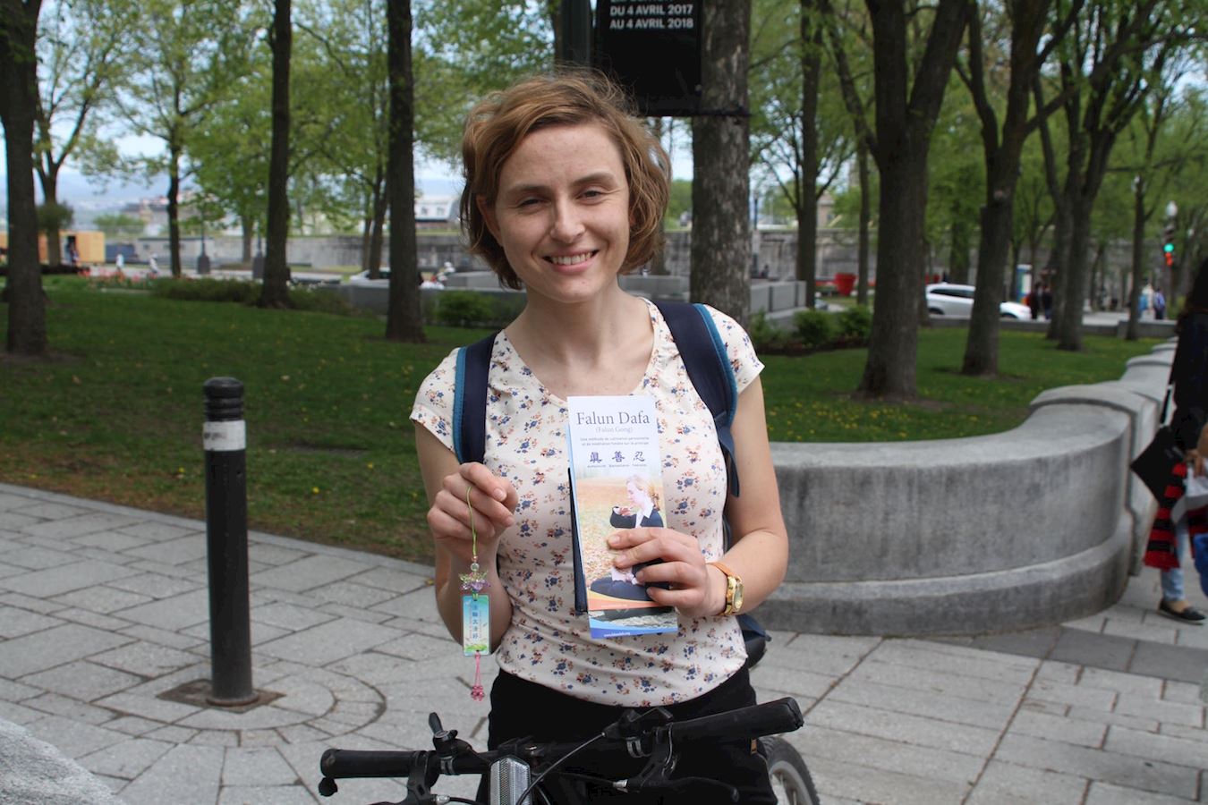 保加利亚移民姆吉甘(Müjgan)和她的父亲经过时,被法轮功学员的炼功场面所吸引。他们了解了真相后说:“法轮功的真、善、忍原则非常重要。”并在请愿信上签名。