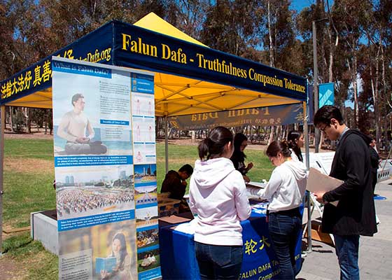在校园中介绍法轮功(图)
