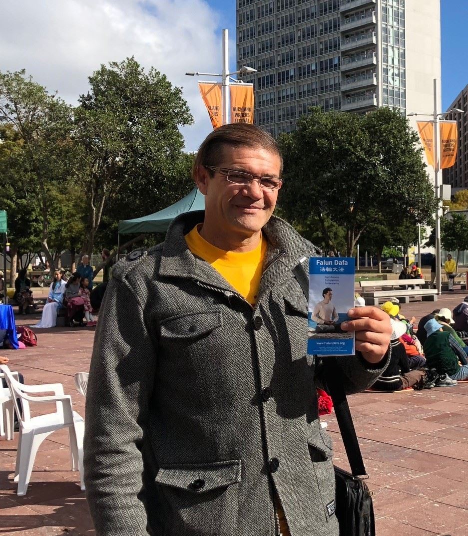 Keith Morgan 家住奥克兰,他原本是打算去听交响乐的,却被法轮功学员的表演吸引,在广场驻足观看,不停地拍照。他表示,自己早就从各种渠道了解了法轮功,还多次看过神韵,让他至今感到费解的是:“为什么中共要迫害法轮功?法轮功并没有威胁到他们的政权。共产国家为什么不能炼法轮功?”他希望新西兰政府能做点什么来帮助停止这场迫害。
