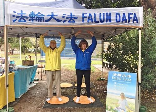 六月九日和十日两天,墨尔本法轮功学员接连参加了两个城镇集市,向当地民众介绍法轮功。人们对祥和优美的功法展示很感兴趣,驻足聆听学员们的介绍。