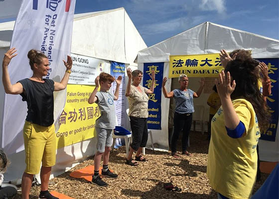 6月14日到17日,2018年丹麦“人民聚会”隆重举办,活动刚开始,法轮功学员的帐篷前就来了不少想学功的人,之后来学功的人流不断。