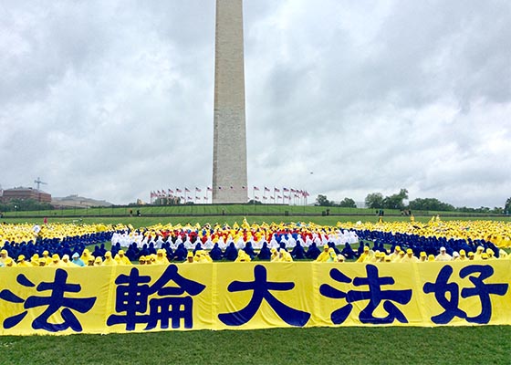 六月二十日,来自世界各地的近万名法轮功学员,在美国首都华盛顿特区举办了系列大型集体炼功和集会,以及反迫害大游行活动,展示法轮大法的美好,同时揭露中共迫害法轮功的真相。