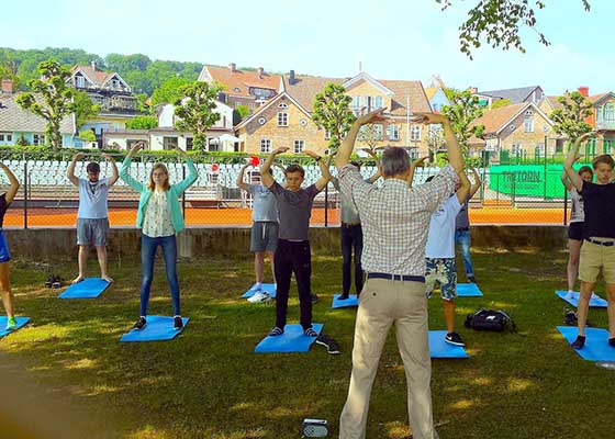 二零一八年五月,瑞典南部风景优美的小城巴斯塔德的高中学生们有缘尝试了源自中国的传统修炼功法——法轮功,还举行了法轮大法功法锻炼课程。