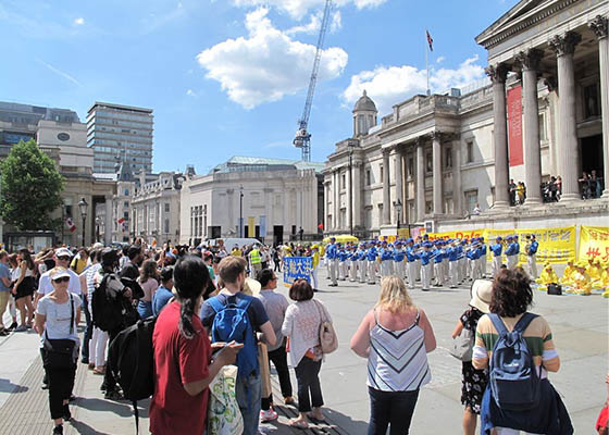 伦敦特拉法加广场上民众感受法轮功的美好(图)