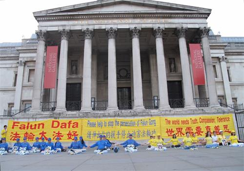 伦敦特拉法加广场上民众感受法轮功的美好(图)