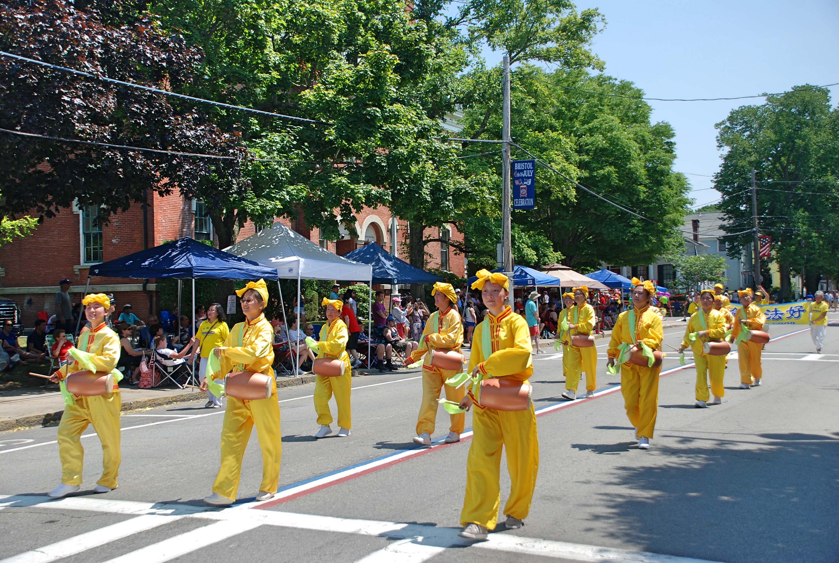 罗德岛州的海滨城市布里斯托尔是美国人在独立日这一天最爱去的地方之一,这里的美国独立日庆典活动也是历史最悠久的一个。当天,天还没亮,就有观众在道路两旁搭好帐篷,放好座椅,“占领”最佳地点观看游行,当地最大电视台作现场直播。