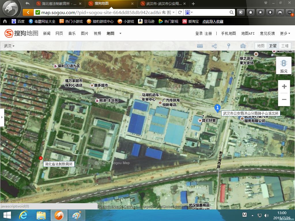 湖北省法制教育所在卫星地图中的位置如下