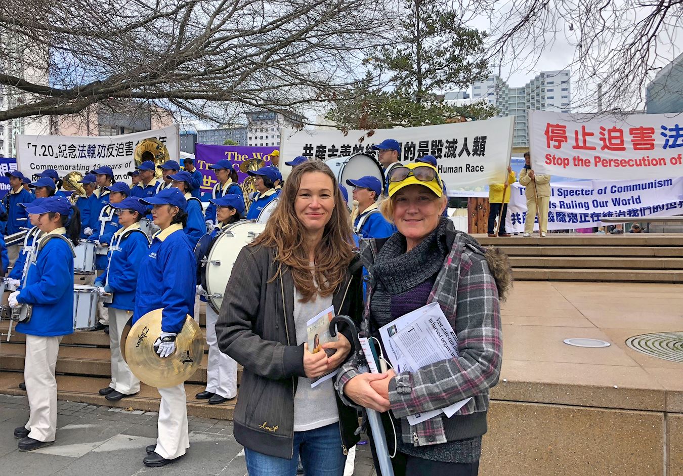 卡若琳·阿克拉(Carolyn Erchler)和她的朋友来自新西兰激流岛,这是第一次遇见法轮功学员,她们对中共迫害这么一个祥和的团体觉得实在不可思议。卡若琳说:它们(中共)一定是疯了。作为土生土长的新西兰人,她们对中共的行径没有办法理解;并说这可能从另一个角度说明法轮功肯定是神奇和很好的东西。她询问法轮功有没有脸书(FaceBook),她要加入粉丝团,和大家一起关注和支持法轮功。