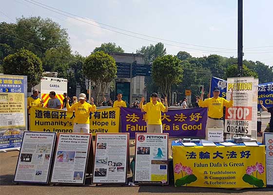 七月十四日,爱尔兰部份法轮功学员聚集在都柏林举行“七二零”反迫害十九周年游行和集会活动,呼吁善良民众制止中共对法轮功的迫害。