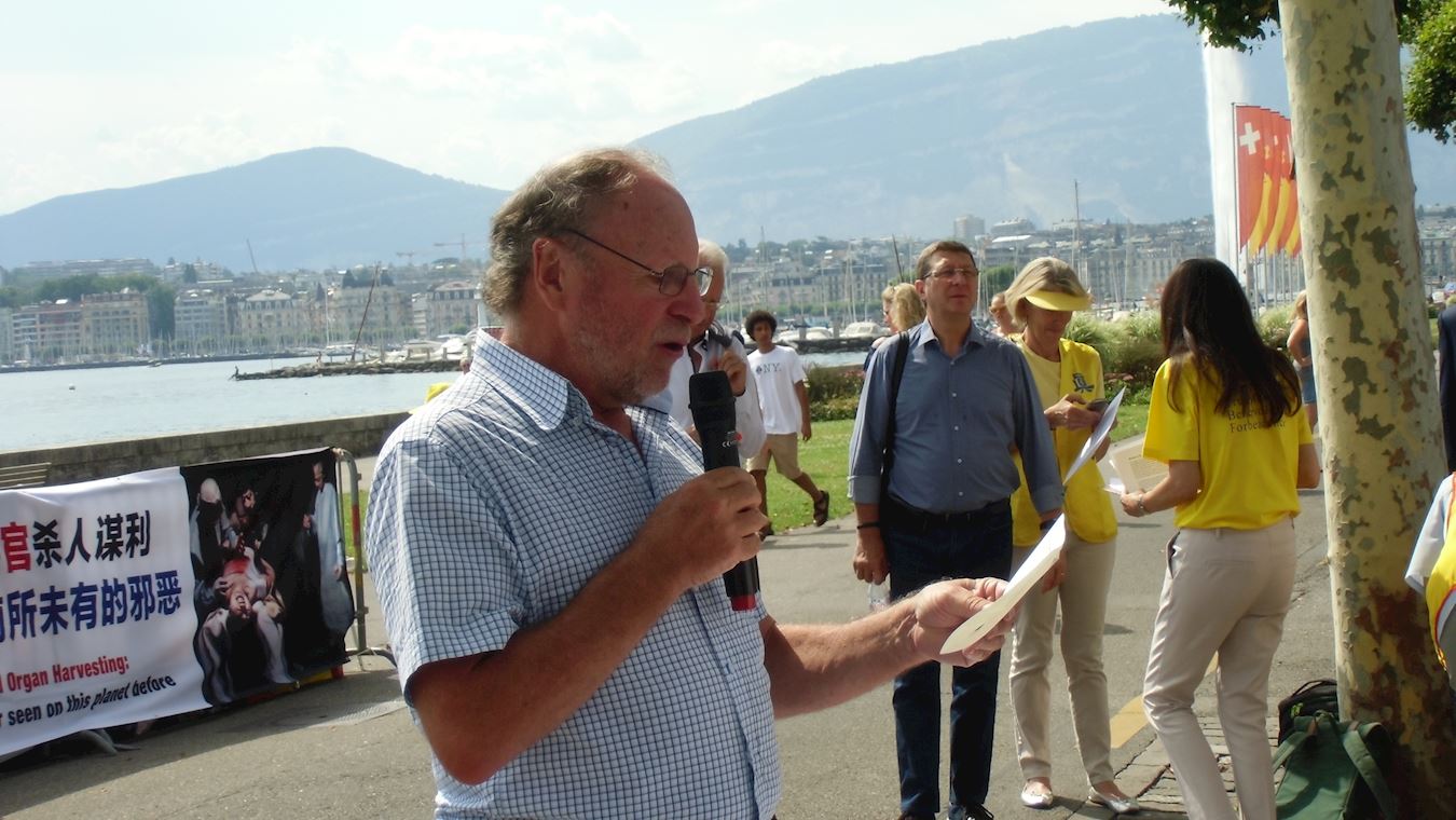 前日内瓦州大议会议员亨利·拉帕兹(Henry Rappaz)先生在发言中表示:“作为日内瓦州大议会的前议员,和一个有良心的人,我将持续不断地揭露和坚持不懈地强烈谴责所有这些可怕的非人道的作为和所有中共政权阴险无耻的行径,我要和受害人、他们的家人,和他们的朋友一起发声,给予他们支持。希望总有一天,基于真善忍美德的法轮功会恢复名誉,而真善忍也是我们的世界必需的普世正面价值。”