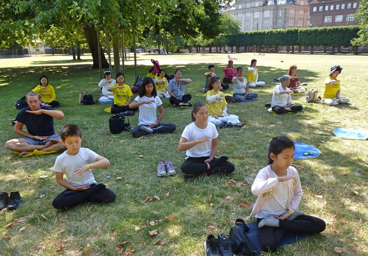 ![]() 图1~2:二零一八年七月二十一日上午,法轮功学员在哥本哈根国王公园集体炼功,传播大法的美好。 |