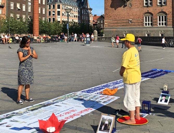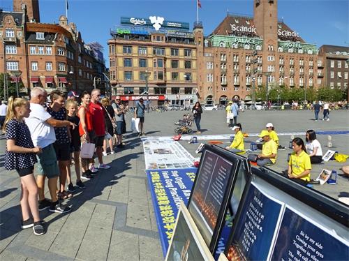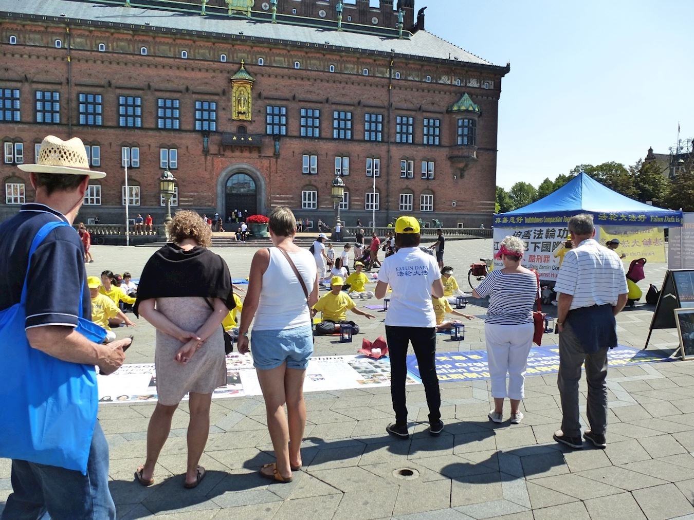 当天上午,下午在哥本哈根政治和商业中心的市政厅广场法轮功学员举办反迫害讲真相集会活动。据明慧网统计,通过民间途径传出的消息、有名有姓的、有四千二百三十六名法轮功学员被迫害致死。在集会上多位来自中国大陆、曾遭受迫害的多位法轮功学员以亲身经历揭露中共的罪行。