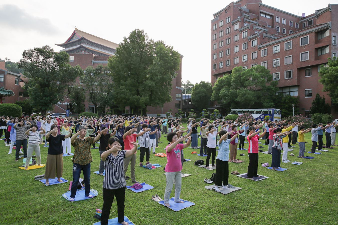 ![]() 图1:来自台湾各地的法轮功区辅导员,二零一八年七月二十九日清晨在台北剑潭青年活动中心集体炼功。 |