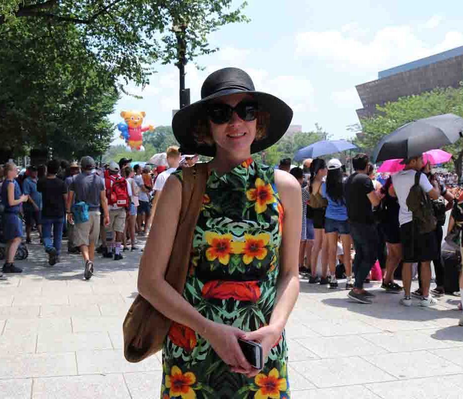 在华盛顿当地一所学校担任教师的咪尼(Minnie)和家人坐在临近终点的街道旁观看游行。咪尼说,法轮功学员为美国独立日游行注入了中国传统文化。她说:“法轮大法的游行队伍令人振奋,他们看起来很幸福,开心。他们溶入到美国的传统游行庆祝活动中,很高兴看到中国的传统服饰和中国传统文化,我很喜欢,天国乐团很精彩,表演很棒!”