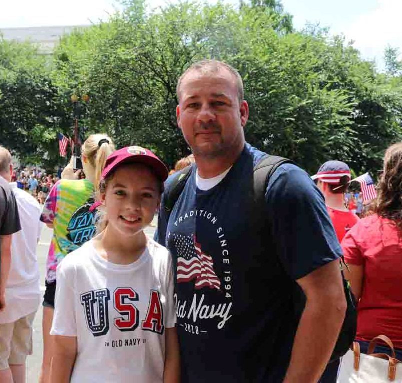 ![]() 图10:来自美国印第安纳州的贝恩(Beyne)带女儿布鲁克林(Brooklyn)来华盛顿观看游行。 |