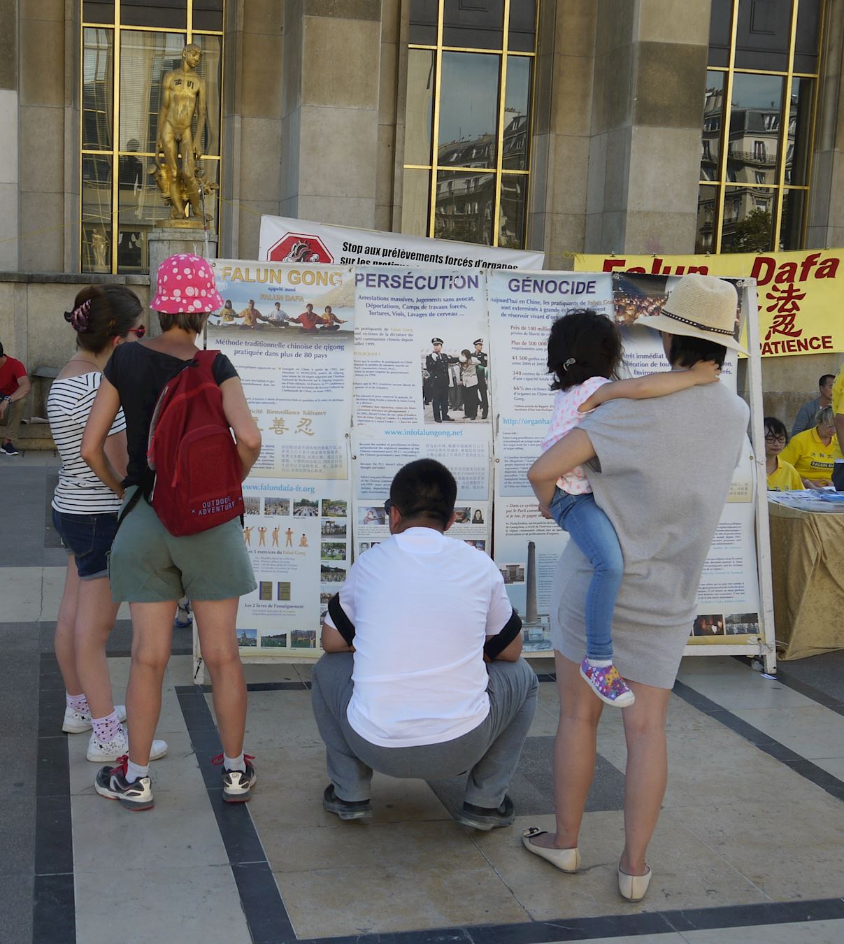 ![]() 图4:大陆游客一家阅读真相展板,了解法轮功真相 |