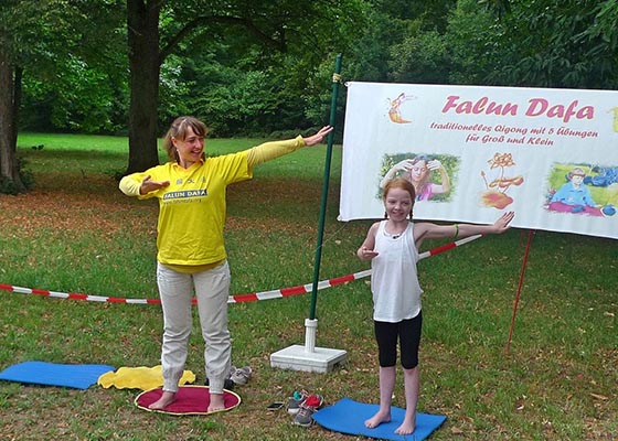 八月十二日,德国不来梅法轮功学员在该市的市民公园,参加了德国最大型的儿童庆祝活动 ——不来梅儿童日。