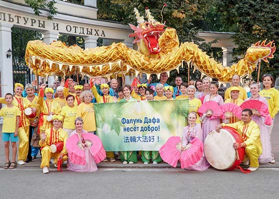 俄罗斯卡鲁加市城市日游行 法轮功受欢迎(图)
