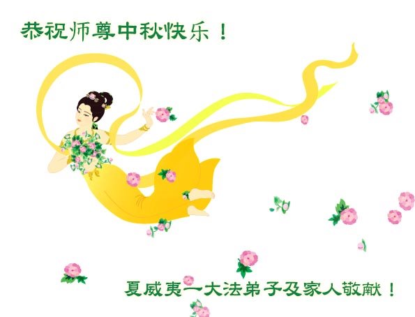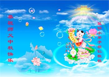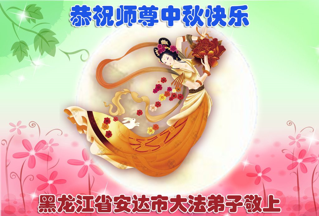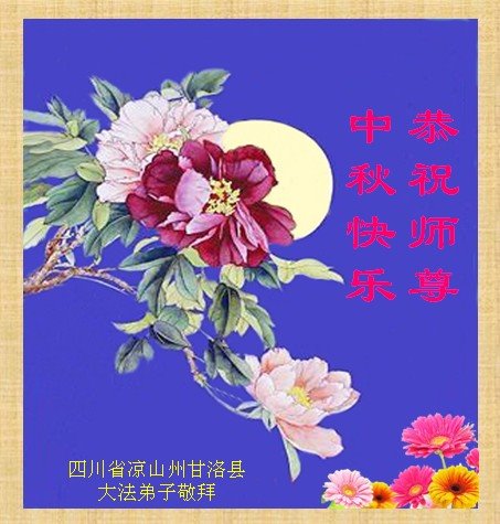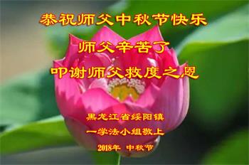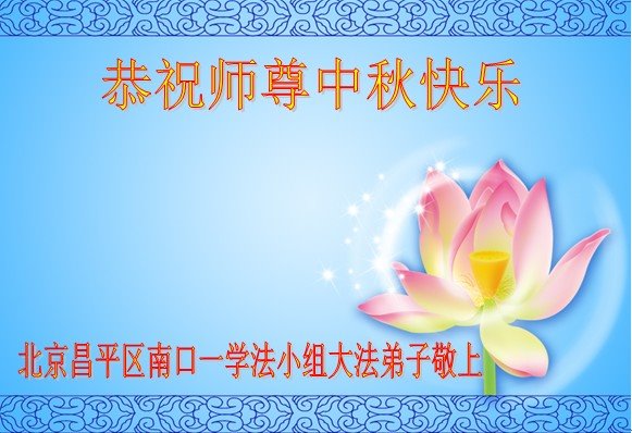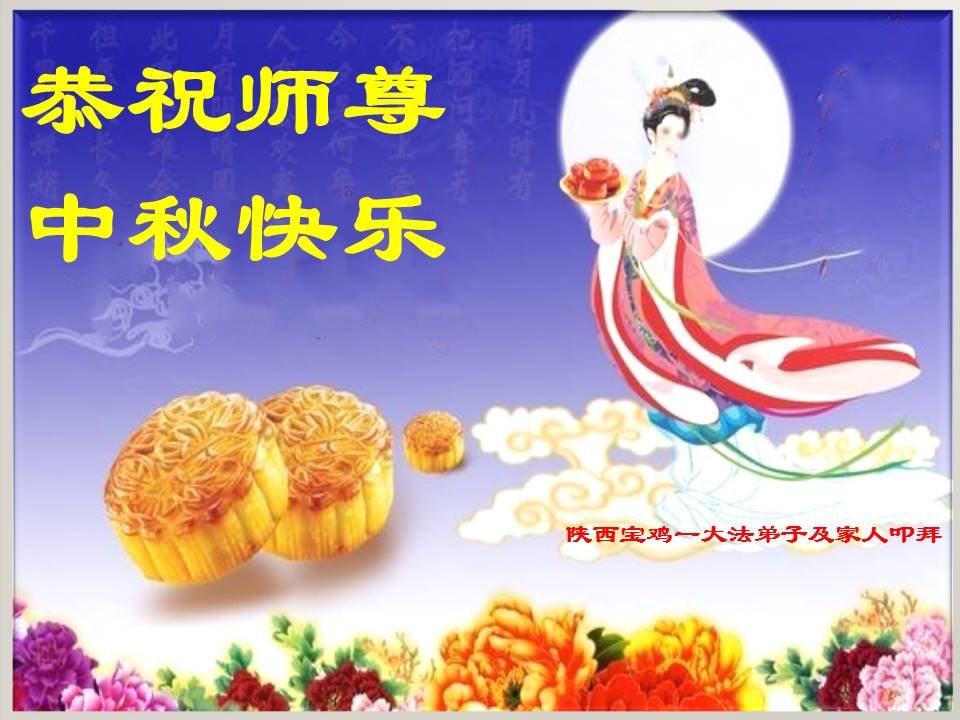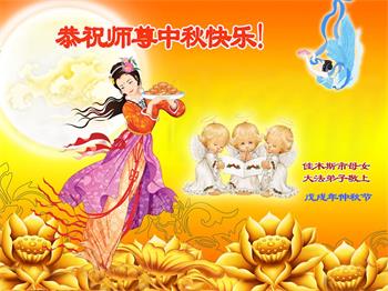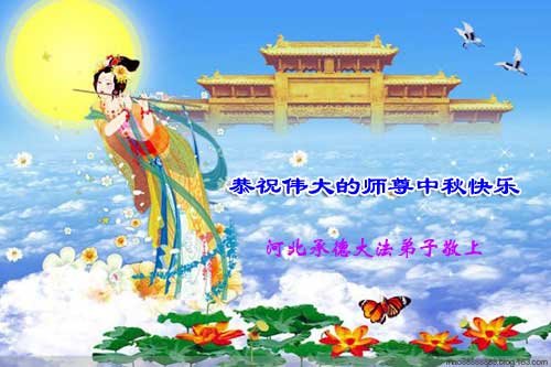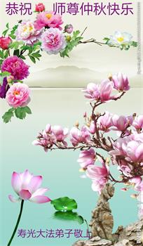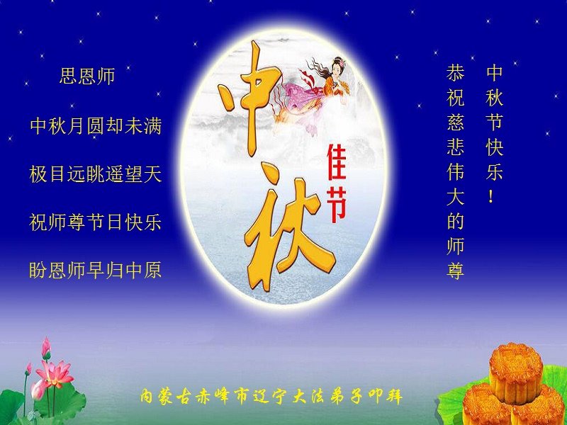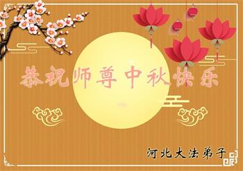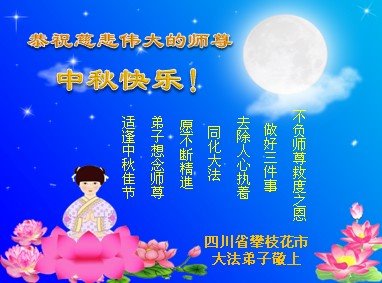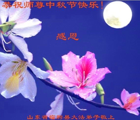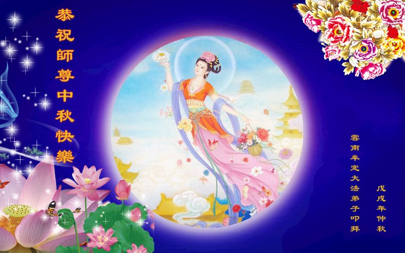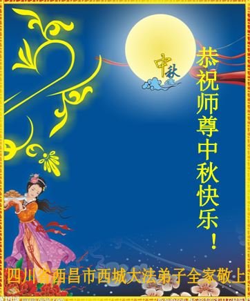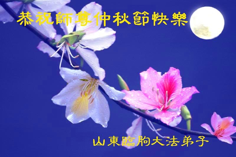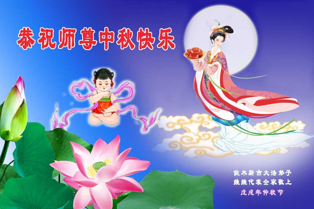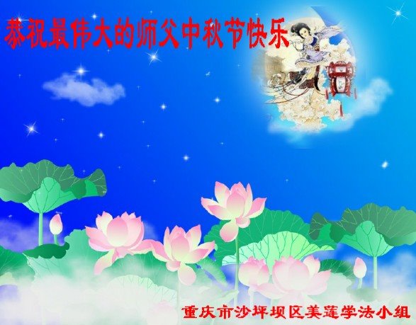 中秋佳节到来了,弟子恭贺师父佳节快乐!中秋是圆满的日子,弟子深深知道师父给予我们的法轮大法,能使我们修炼圆满。一些同修在大法中修炼勇猛精進,修成了,成为真正的大法徒,他们无愧师父的慈悲救度, 无愧于他们世界众生的期盼,他们的生命已经走向永恒。弟子惭愧,在目前师父的巨大承受下延长的修炼时间里,还不知道很珍惜,至今还有很多执着没有放下,没有修去,弟子希望能在今后的修炼中严格按法轮大法的要求去修炼,走向圆满。弟子无限感激师父的洪大慈悲救度之恩,在中秋佳节叩谢师父!,弟子给师父深深的敬合十礼!