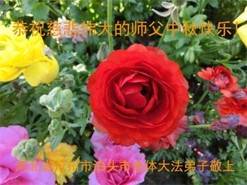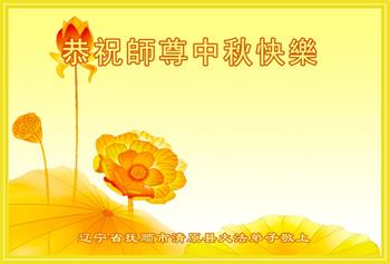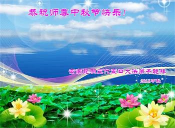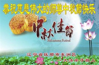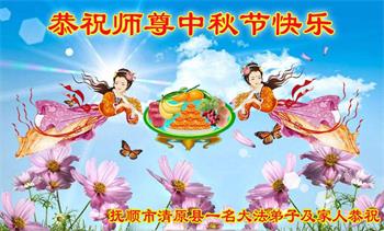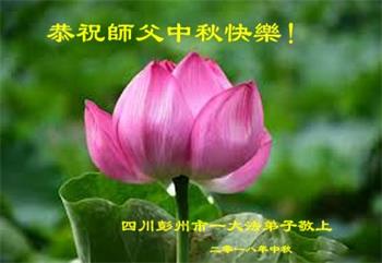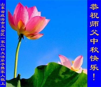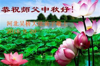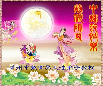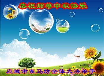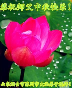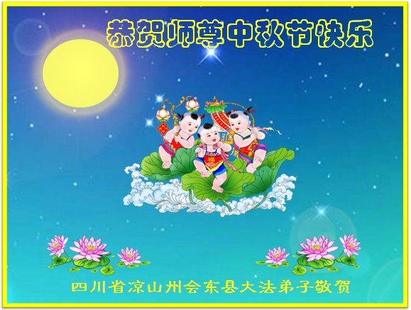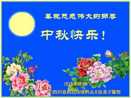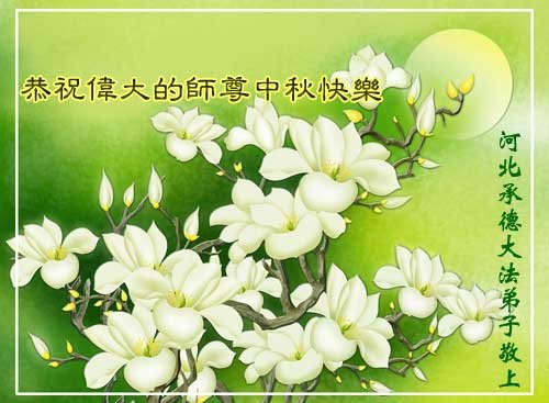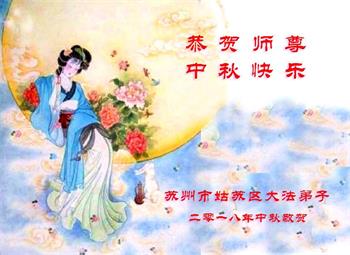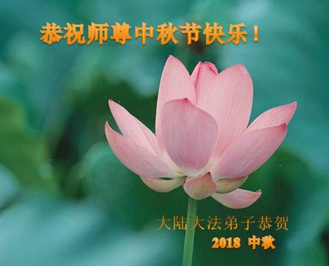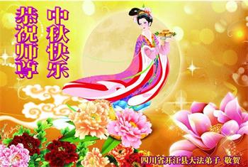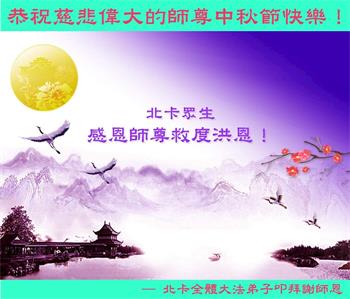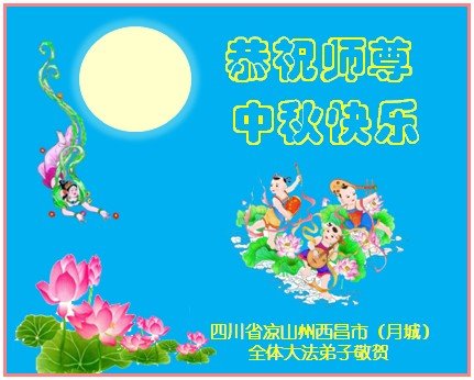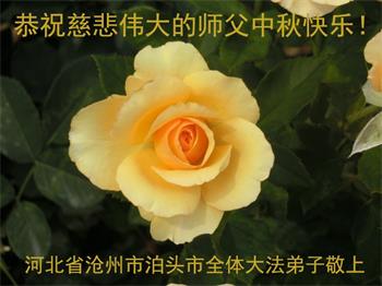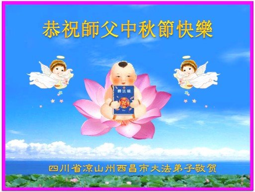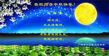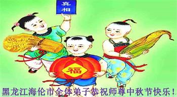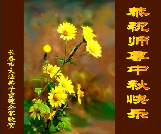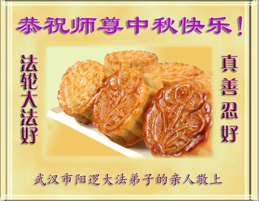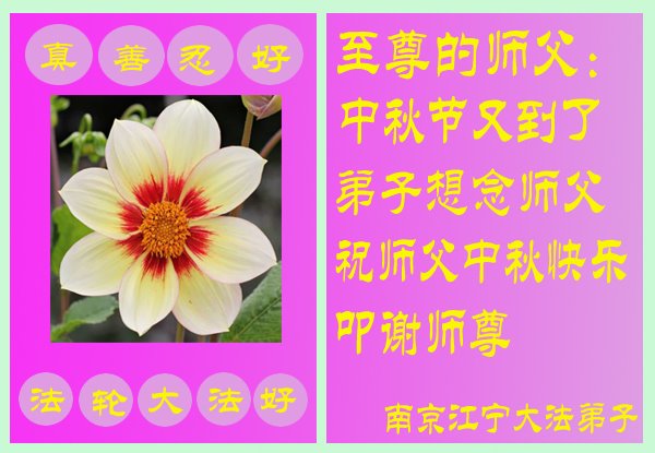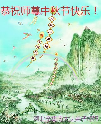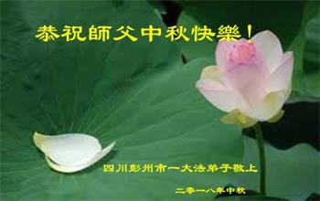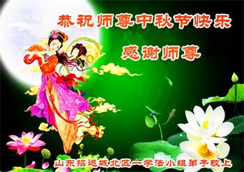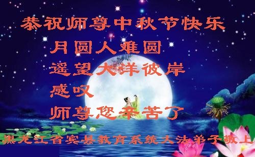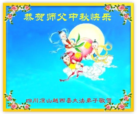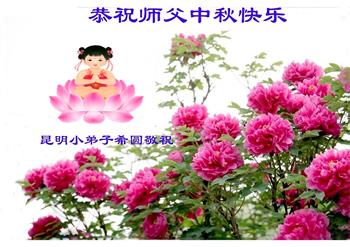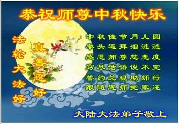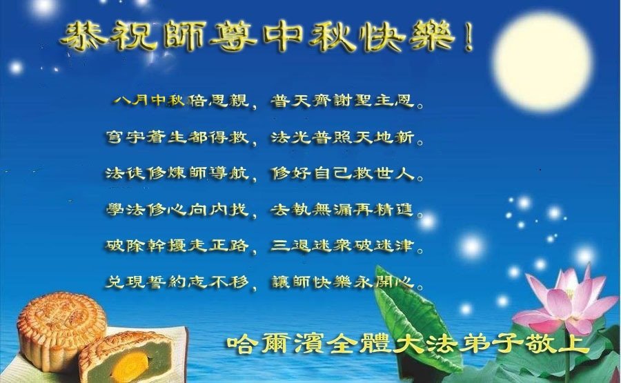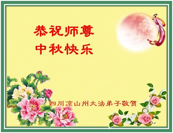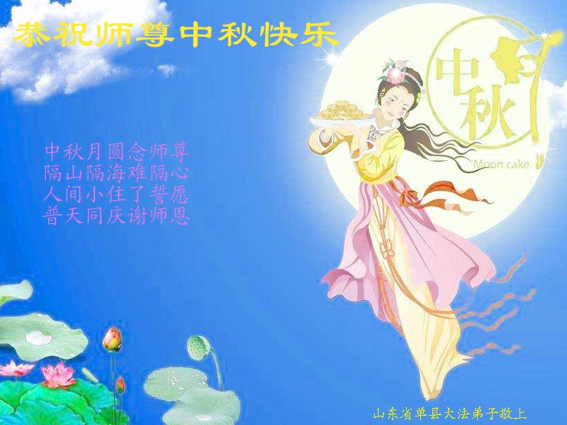 中秋佳节到来了,弟子恭贺师父佳节快乐!中秋是圆满的日子,弟子深深知道师父给予我们的法轮大法,能使我们修炼圆满。一些同修在大法中修炼勇猛精進,修成了,成为真正的大法徒,他们无愧师父的慈悲救度, 无愧于他们世界众生的期盼,他们的生命已经走向永恒。弟子惭愧,在目前师父的巨大承受下延长的修炼时间里,还不知道很珍惜,至今还有很多执着没有放下,没有修去,弟子希望能在今后的修炼中严格按法轮大法的要求去修炼,走向圆满。弟子无限感激师父的洪大慈悲救度之恩,在中秋佳节叩谢师父!,弟子给师父深深的敬合十礼!