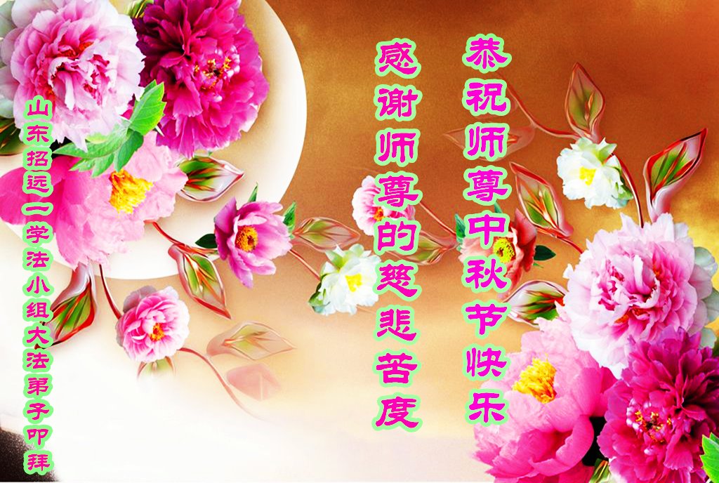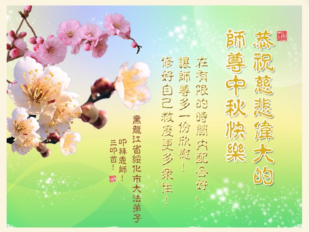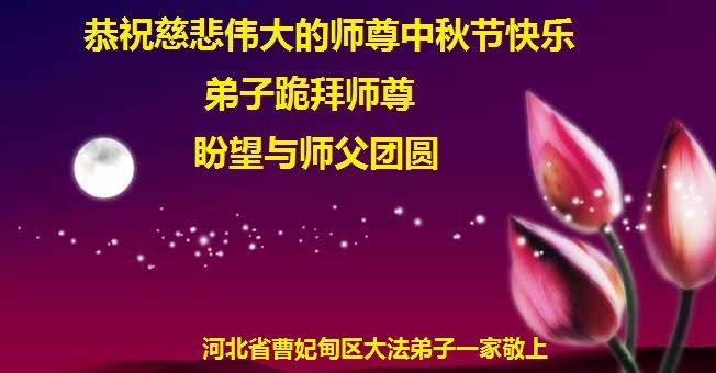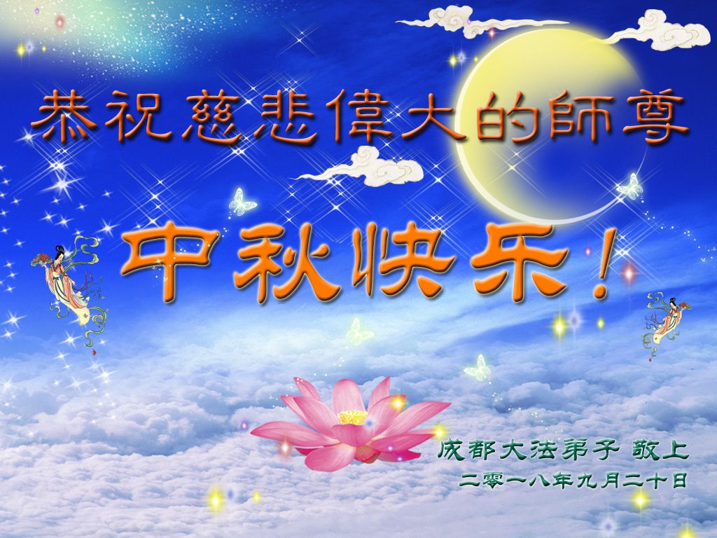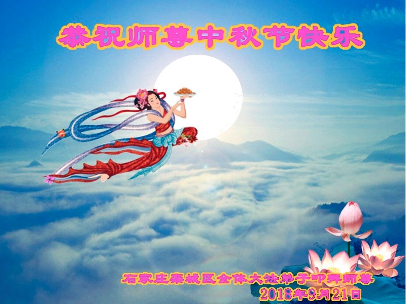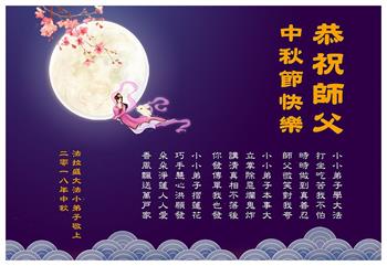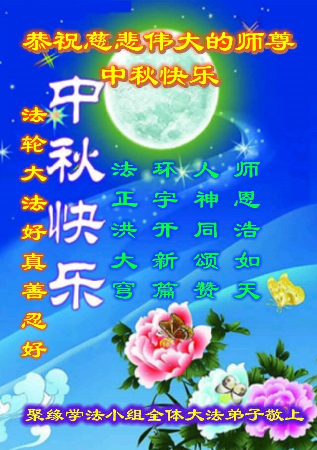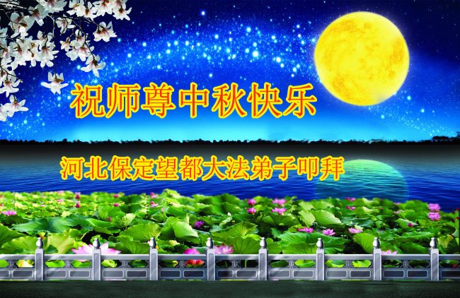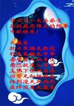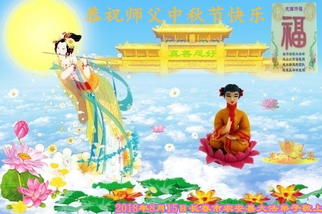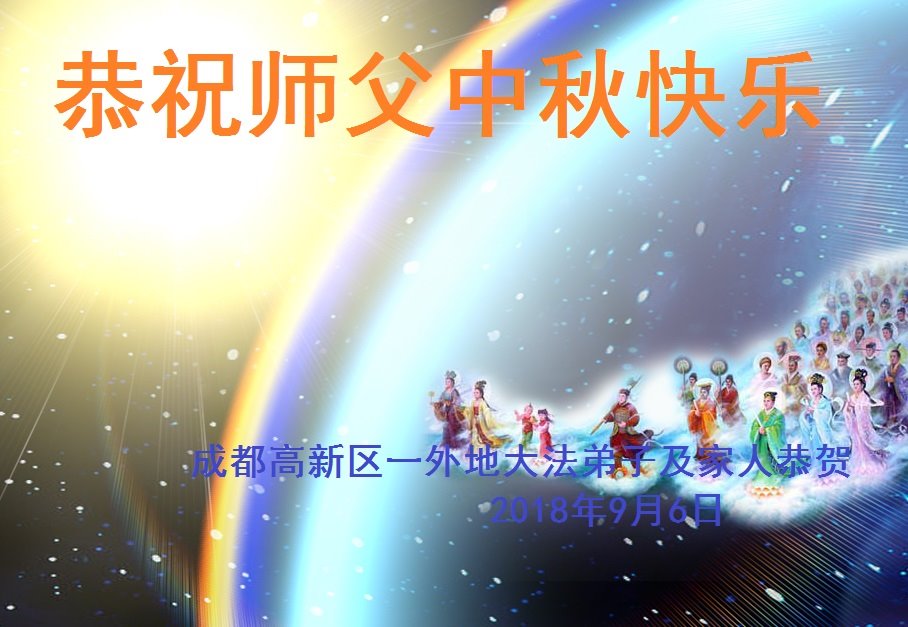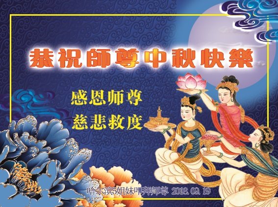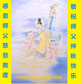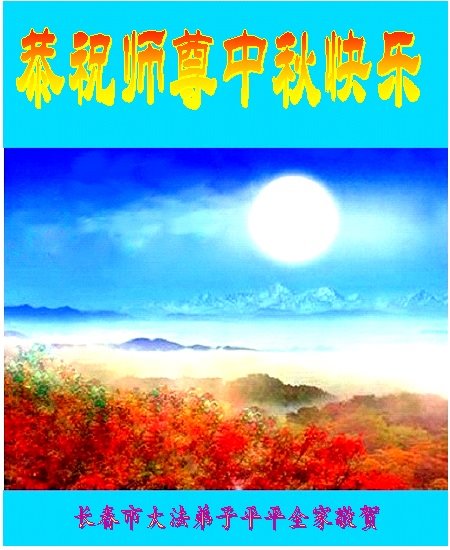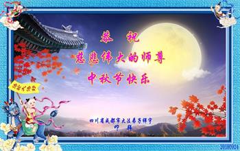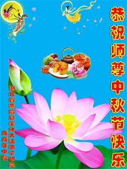 师尊您好!师尊辛苦了!在这中秋佳节来临之际,弟子非常想念师尊,弟子心怀无限的感恩和崇敬恭祝师尊中秋快乐!在弟子修炼路上每前進一步,都浸透了师尊的无量慈悲和巨大付出,弟子叩谢师尊佛恩浩荡! 我们要学好法、学懂法,修好自己,在提高心性上多下功夫,认真做好三件事,这是我们的责任,我们一定会做得更好,因为我们有伟大的师父,有伟大的法!