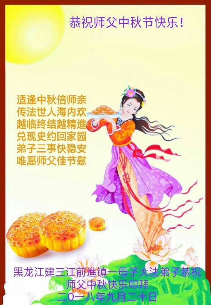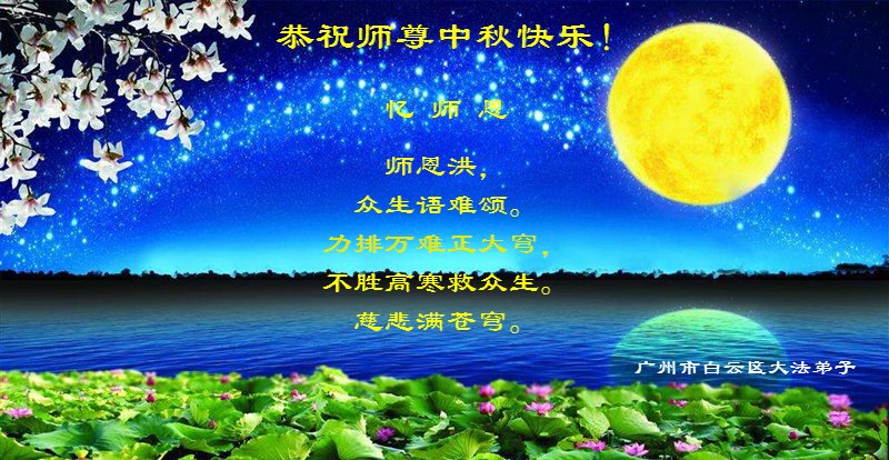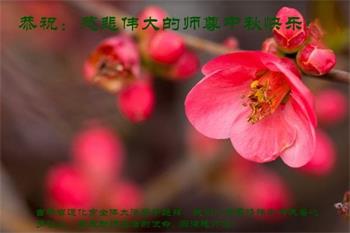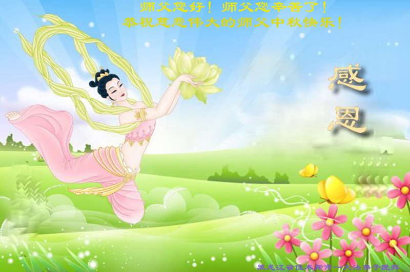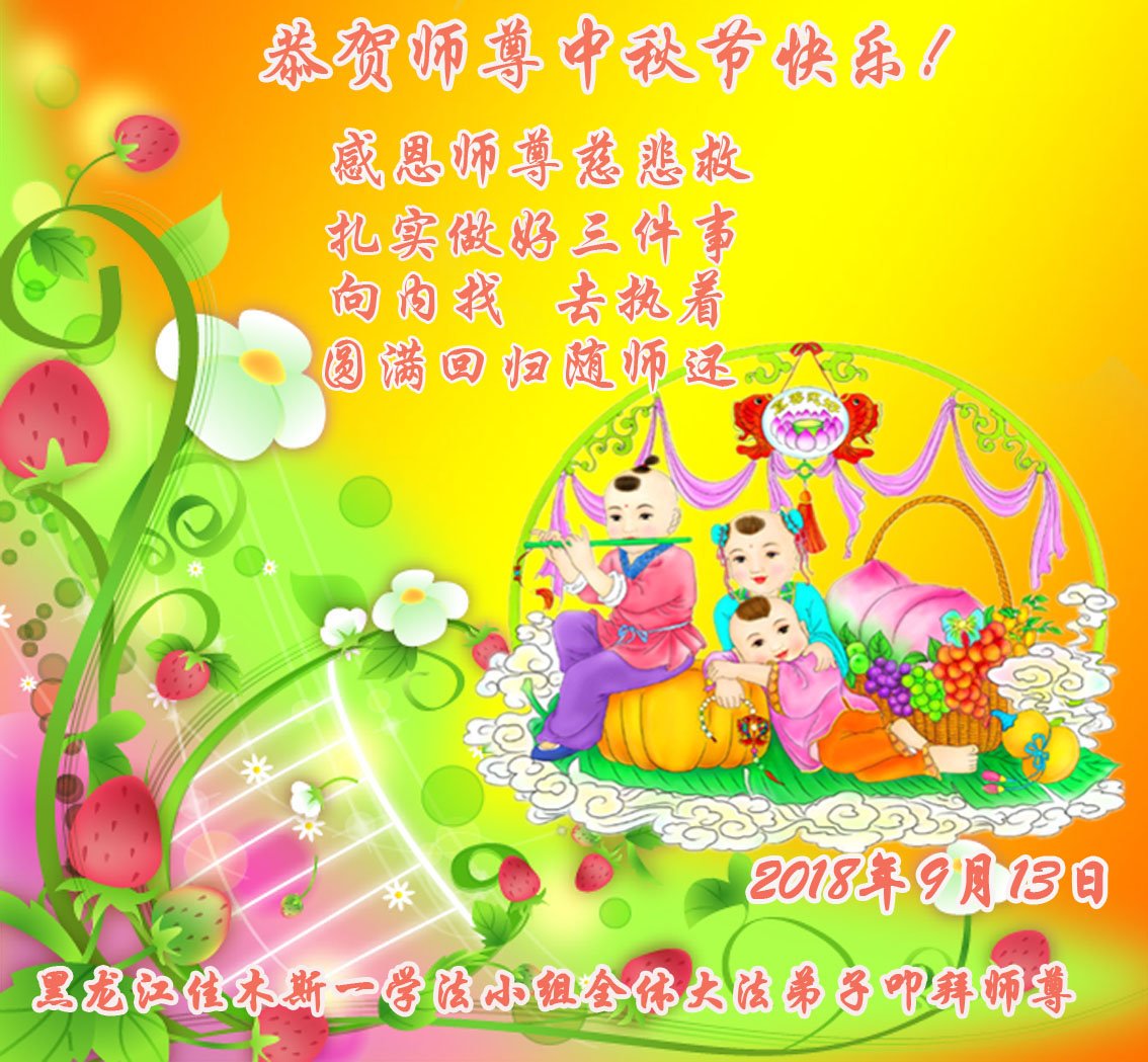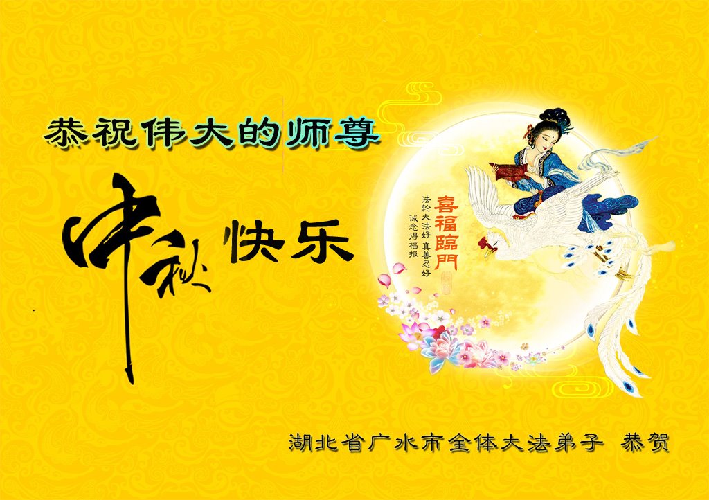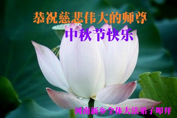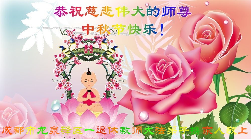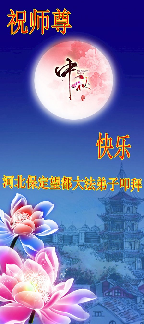 师尊您好!师尊辛苦了!在这中秋佳节来临之际,弟子非常想念师尊,弟子心怀无限的感恩和崇敬恭祝师尊中秋快乐!在弟子修炼路上每前進一步,都浸透了师尊的无量慈悲和巨大付出,弟子叩谢师尊佛恩浩荡! 我们要学好法、学懂法,修好自己,在提高心性上多下功夫,认真做好三件事,这是我们的责任,我们一定会做得更好,因为我们有伟大的师父,有伟大的法!