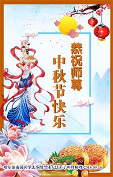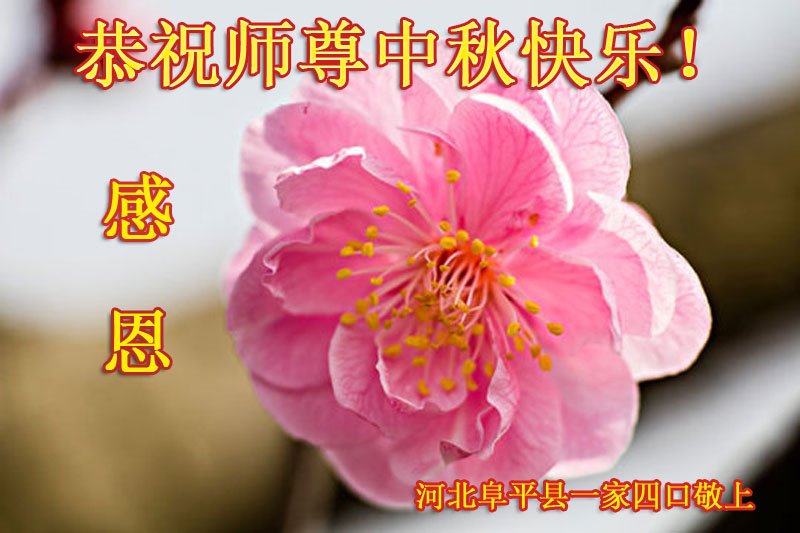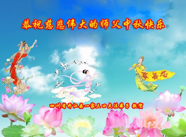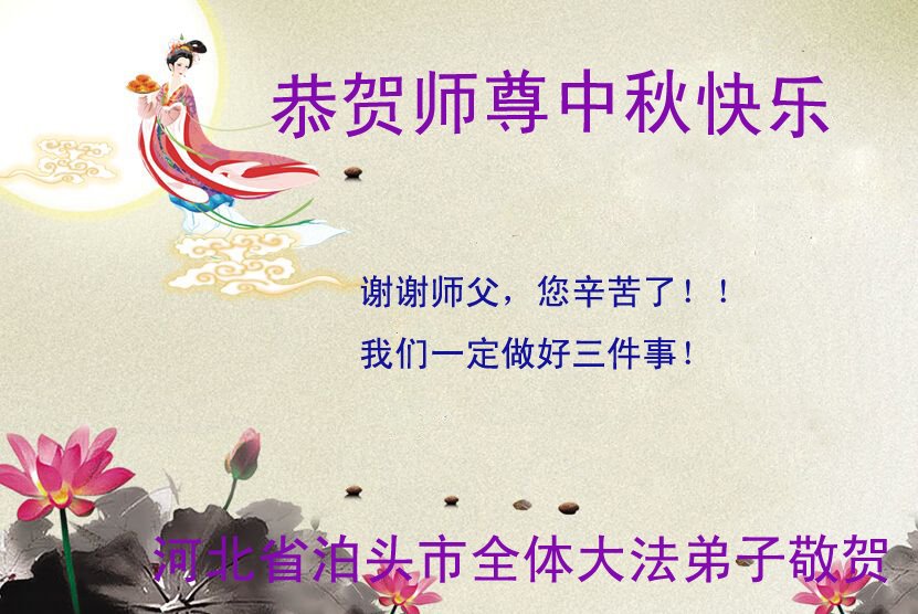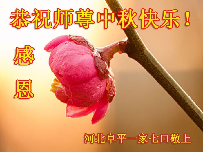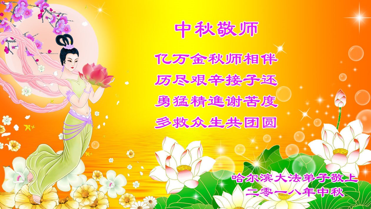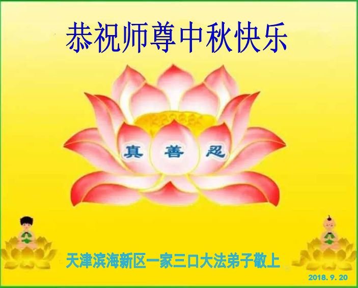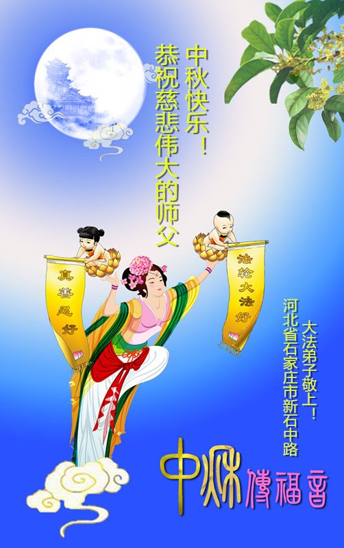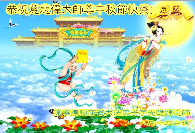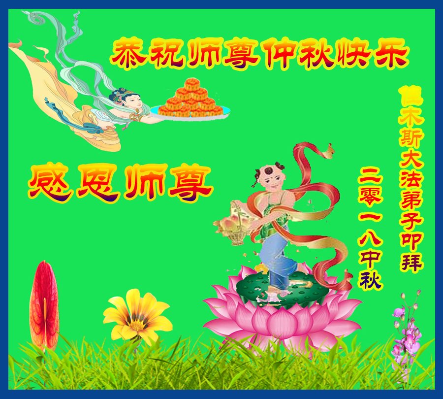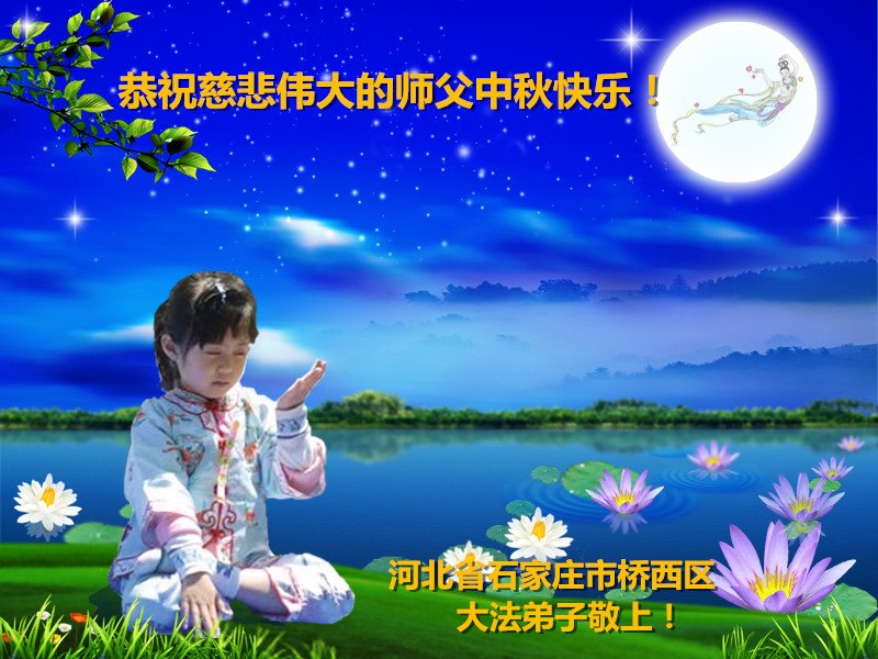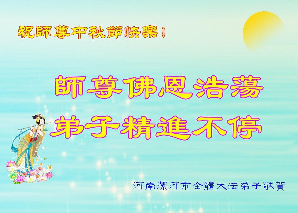 师尊您好!师尊辛苦了!在这中秋佳节来临之际,弟子非常想念师尊,弟子心怀无限的感恩和崇敬恭祝师尊中秋快乐!在弟子修炼路上每前進一步,都浸透了师尊的无量慈悲和巨大付出,弟子叩谢师尊佛恩浩荡! 我们要学好法、学懂法,修好自己,在提高心性上多下功夫,认真做好三件事,这是我们的责任,我们一定会做得更好,因为我们有伟大的师父,有伟大的法!