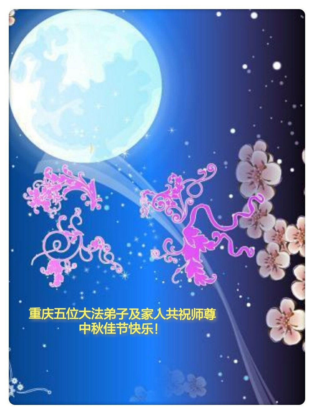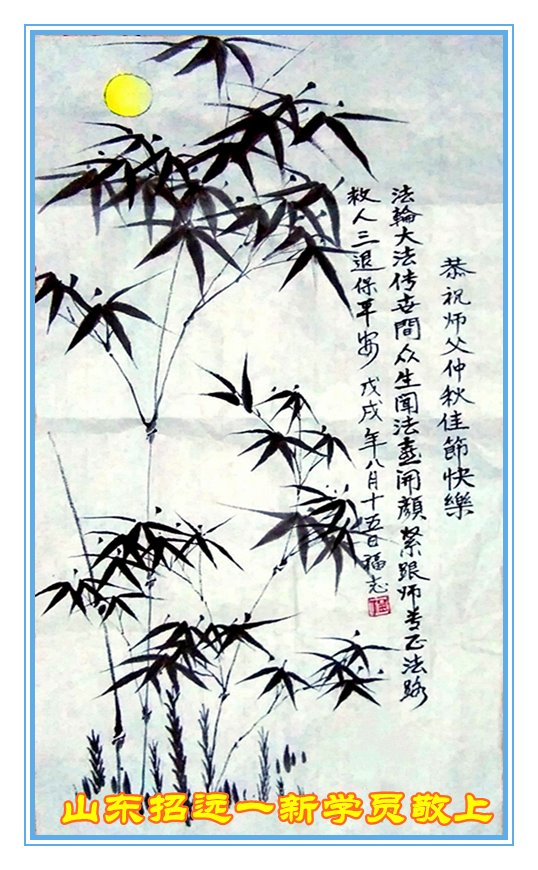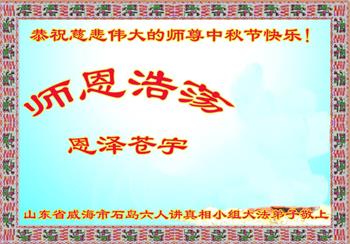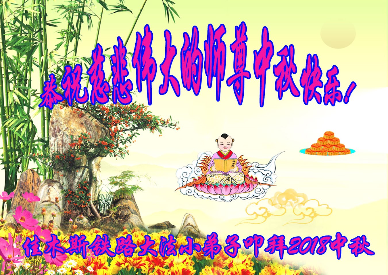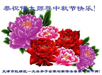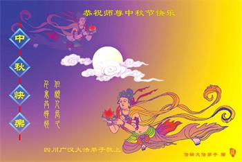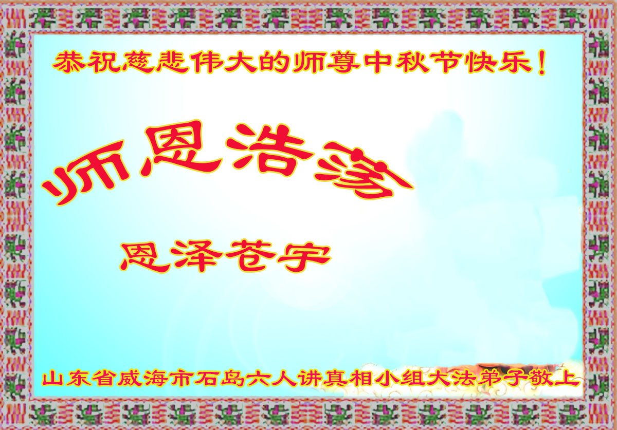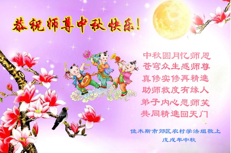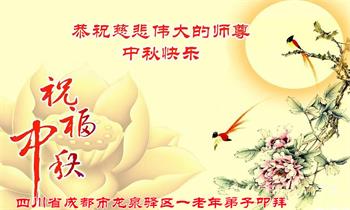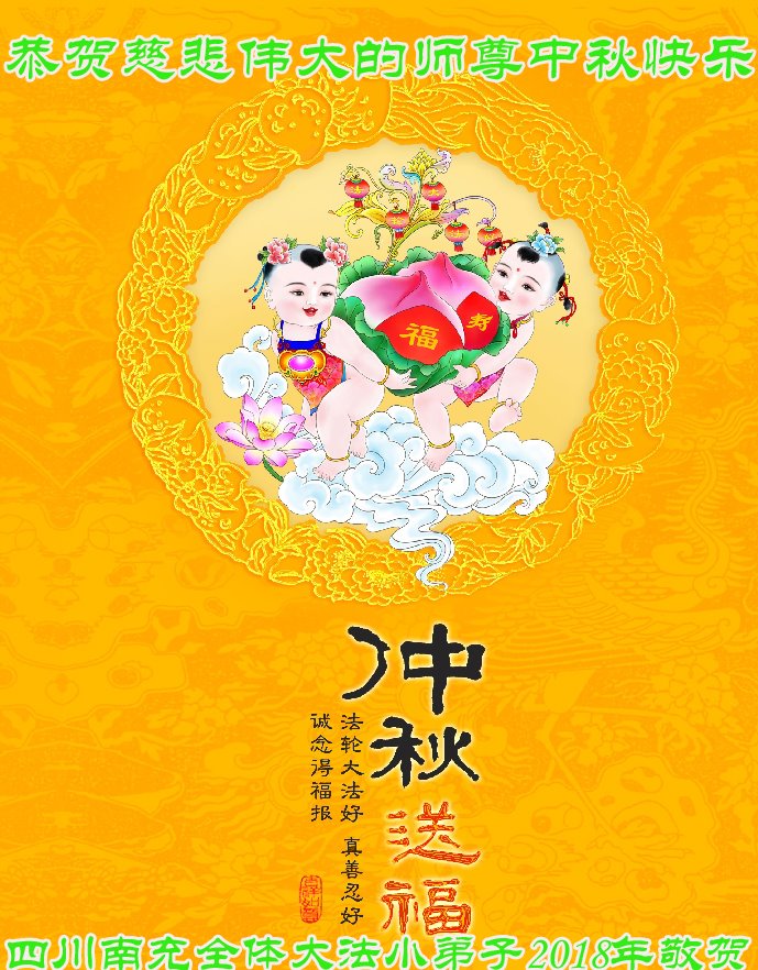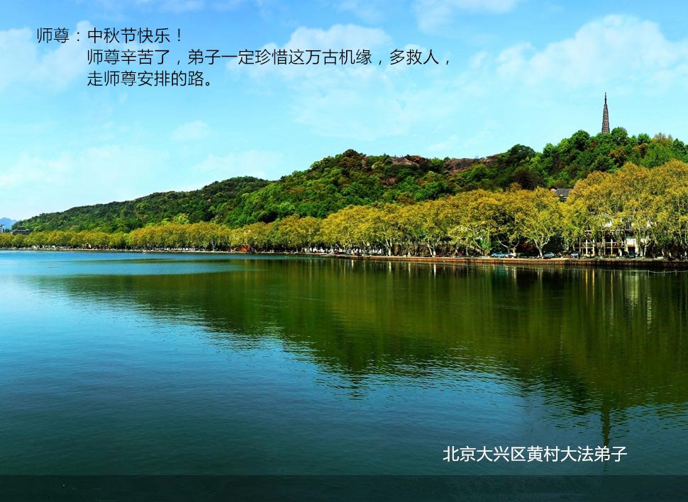 师尊您好!师尊辛苦了!在这中秋佳节来临之际,弟子非常想念师尊,弟子心怀无限的感恩和崇敬恭祝师尊中秋快乐!在弟子修炼路上每前進一步,都浸透了师尊的无量慈悲和巨大付出,弟子叩谢师尊佛恩浩荡! 我们要学好法、学懂法,修好自己,在提高心性上多下功夫,认真做好三件事,这是我们的责任,我们一定会做得更好,因为我们有伟大的师父,有伟大的法!