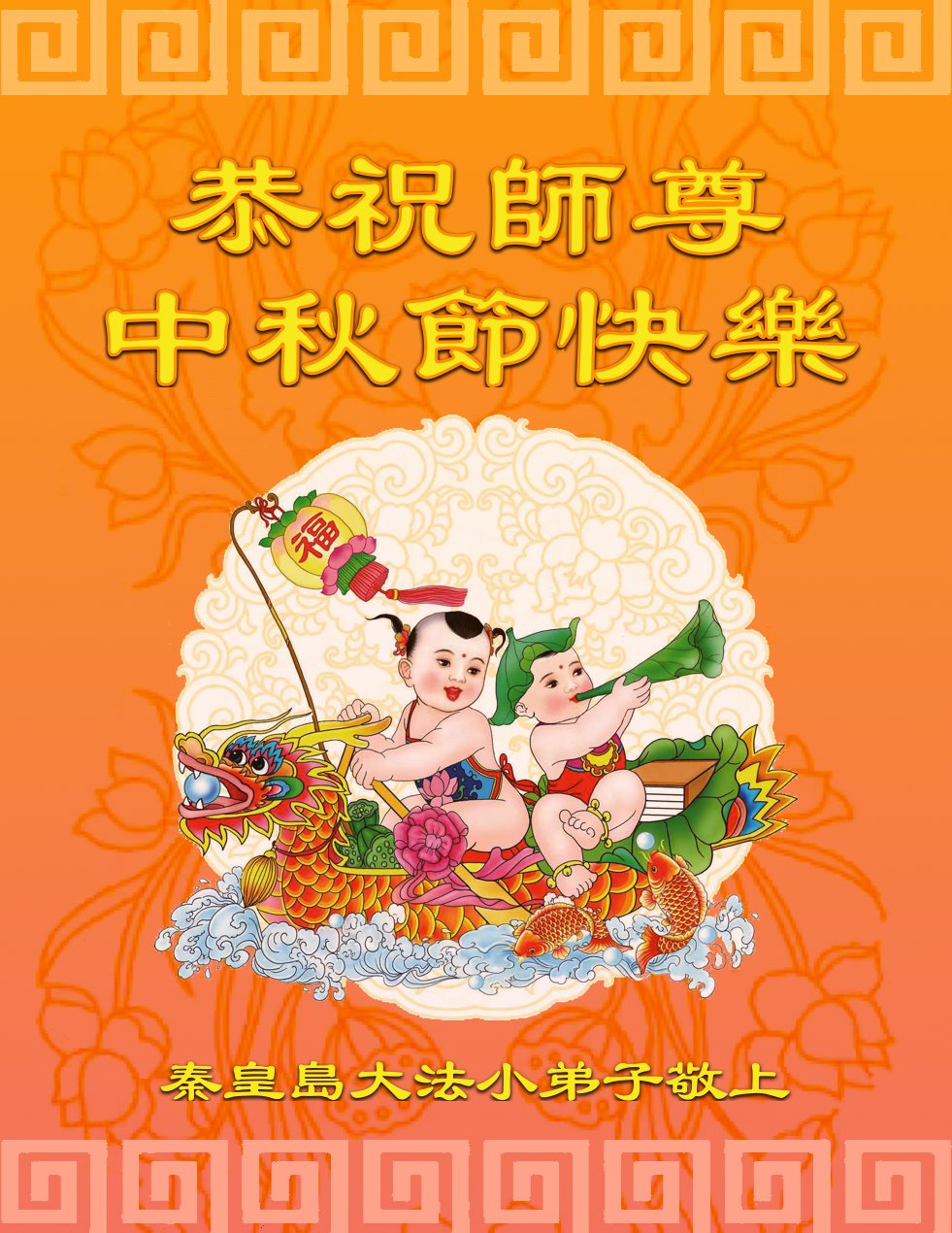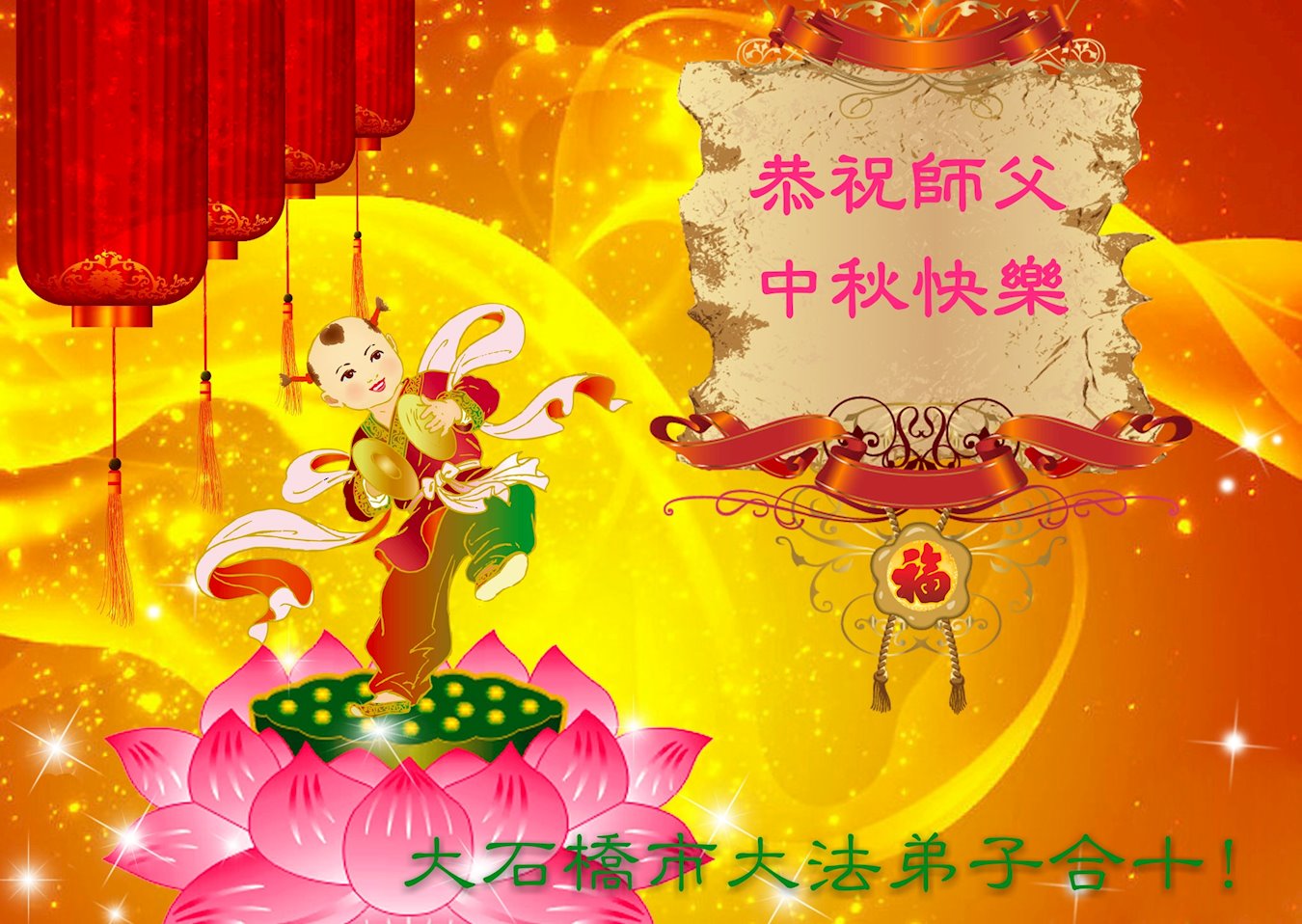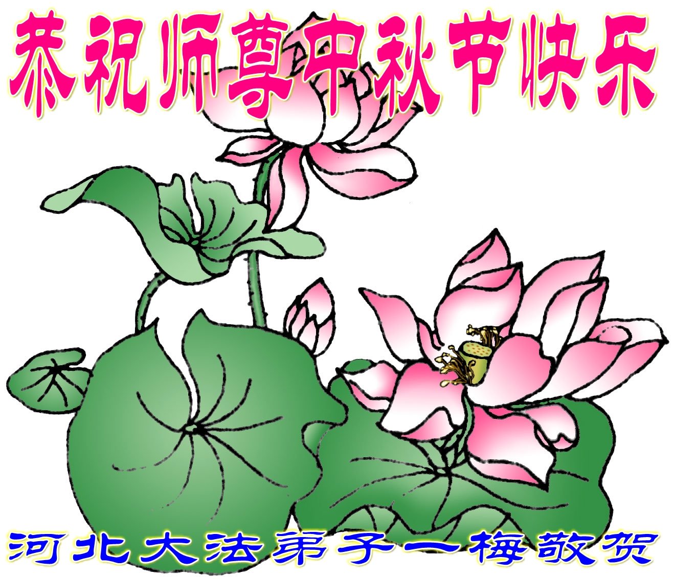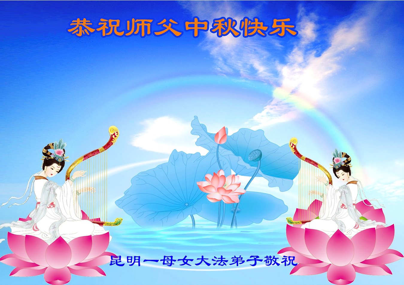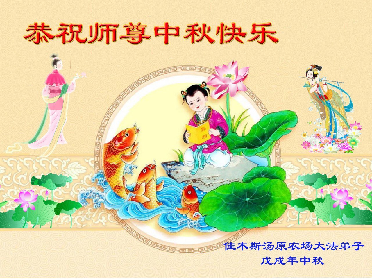 师尊您好!师尊辛苦了!在这中秋佳节来临之际,弟子非常想念师尊,弟子心怀无限的感恩和崇敬恭祝师尊中秋快乐!在弟子修炼路上每前進一步,都浸透了师尊的无量慈悲和巨大付出,弟子叩谢师尊佛恩浩荡! 我们要学好法、学懂法,修好自己,在提高心性上多下功夫,认真做好三件事,这是我们的责任,我们一定会做得更好,因为我们有伟大的师父,有伟大的法!