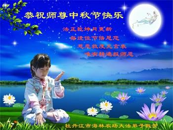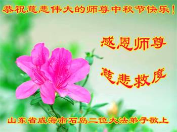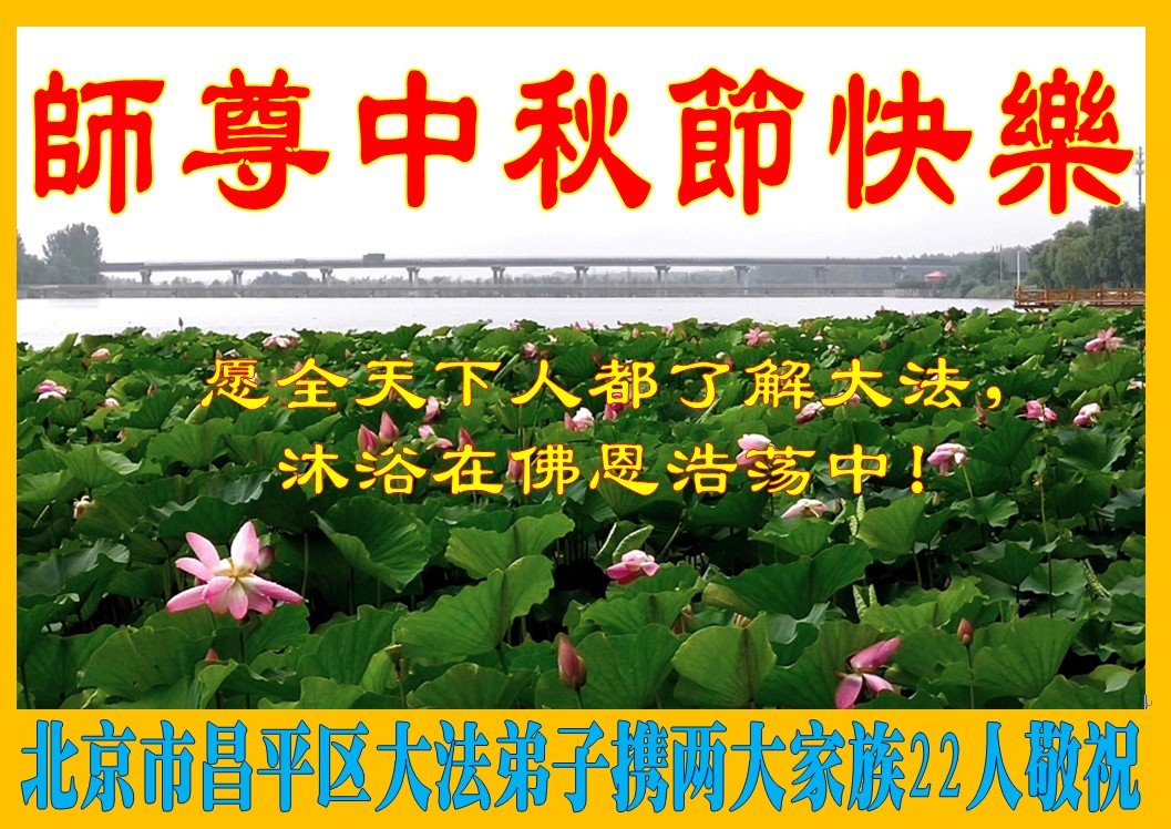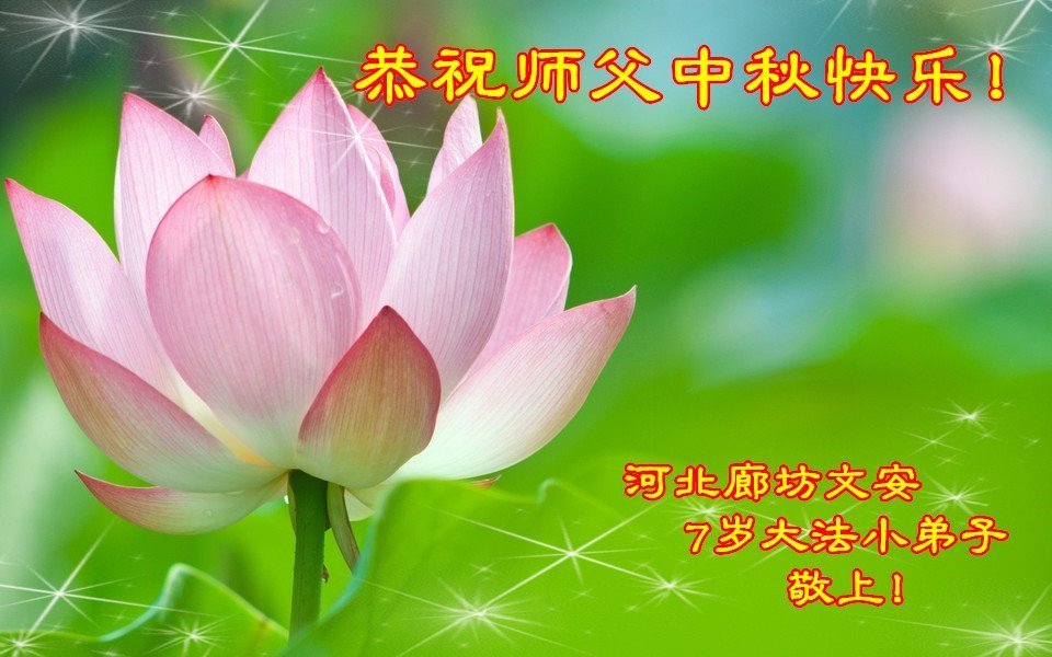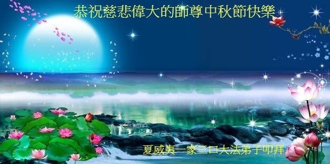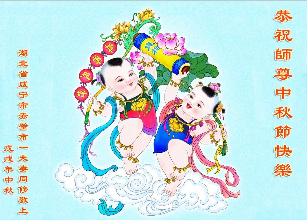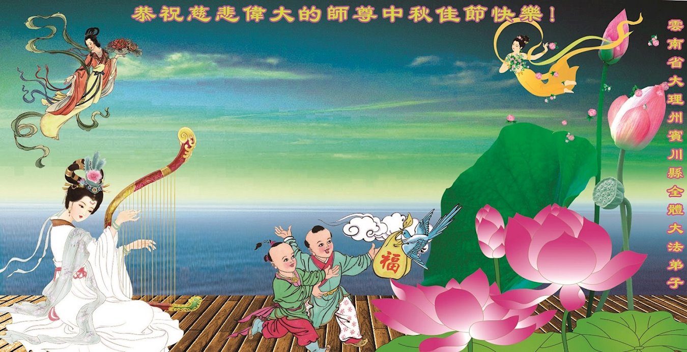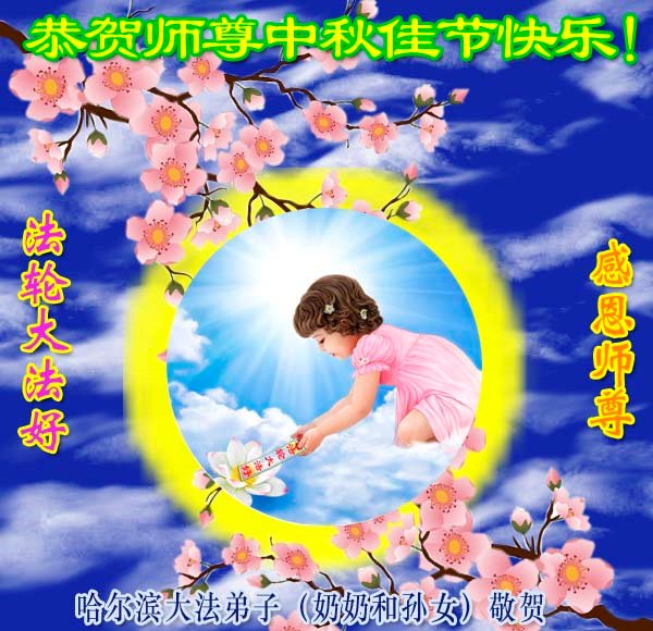 师父洪大的慈悲、为众生艰辛的付出,倾尽人类所有的语言都无法表达。值此中秋佳节之际,我和我的女儿——昔日的小同修恭祝慈悲伟大的师尊中秋快乐!并叩谢师恩!我女儿于一九九七年不到十岁时就随我到炼功点炼功,参加过四、二五。一九九九年七.二零法轮功被迫害的前一天,我们参加了最后一次集体炼功。那天,我对女儿说,咱们一起回到天上去好吗?女儿说好。就这一字的应诺,师父就一直在管着她。法轮功被迫害后,我怕未成年的孩子应付不了残酷的迫害,就没带她继续修炼。但师父始终没有放弃她。前几年,师父安排她来到海外修炼,然而由于某些原因,她没能走入修炼。最近师父再次为她做了安排,她终于走進了修炼。慈悲伟大的师父不想落下每一个昔日同修和当年的小弟子,希望还没有走回修炼的同修,不枉师父的慈悲苦度,赶快回到大法中来吧。再次叩谢师恩!合十