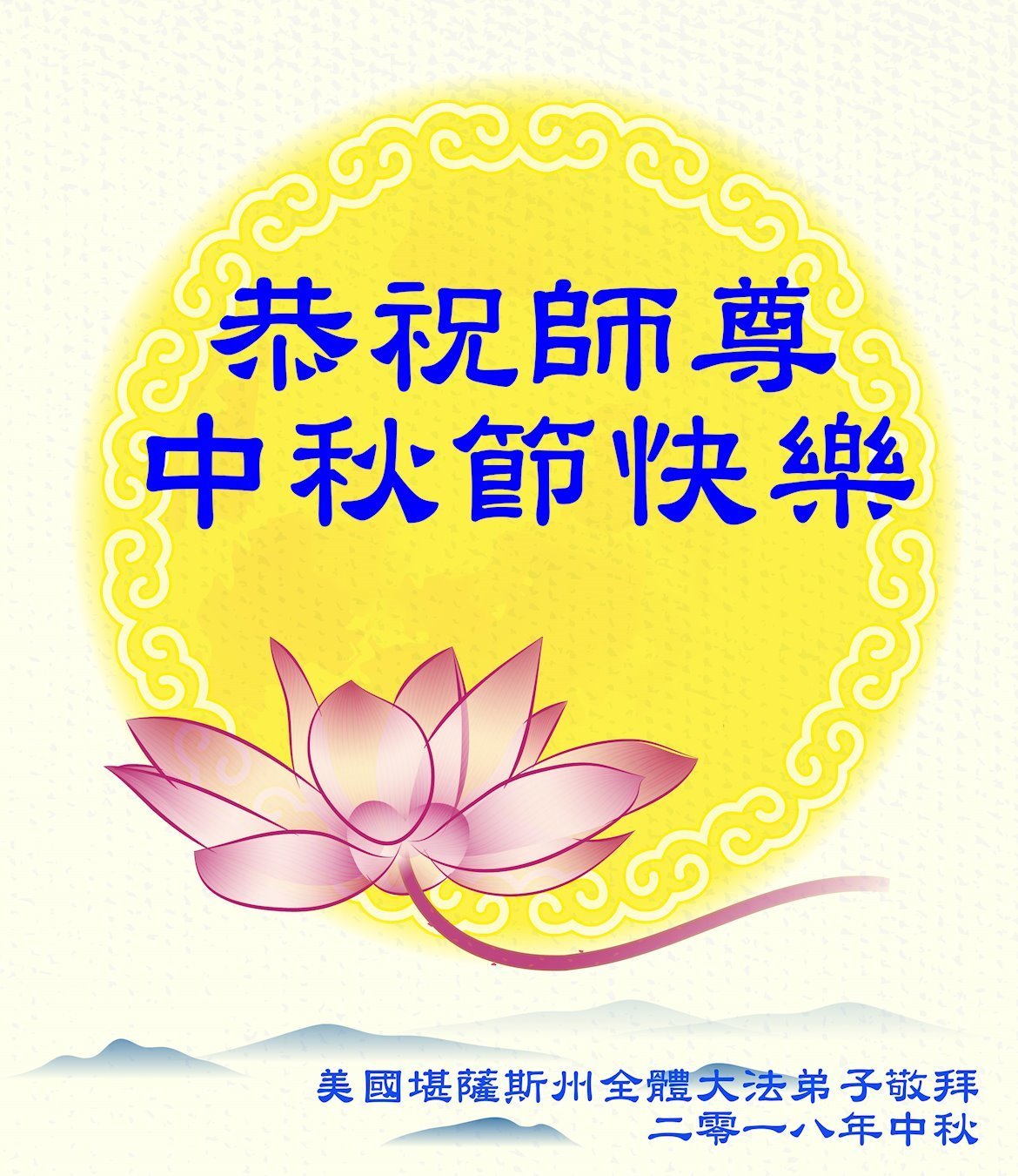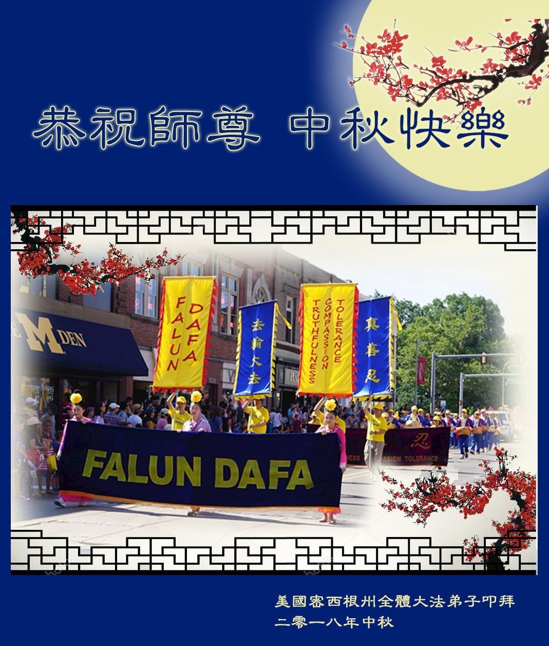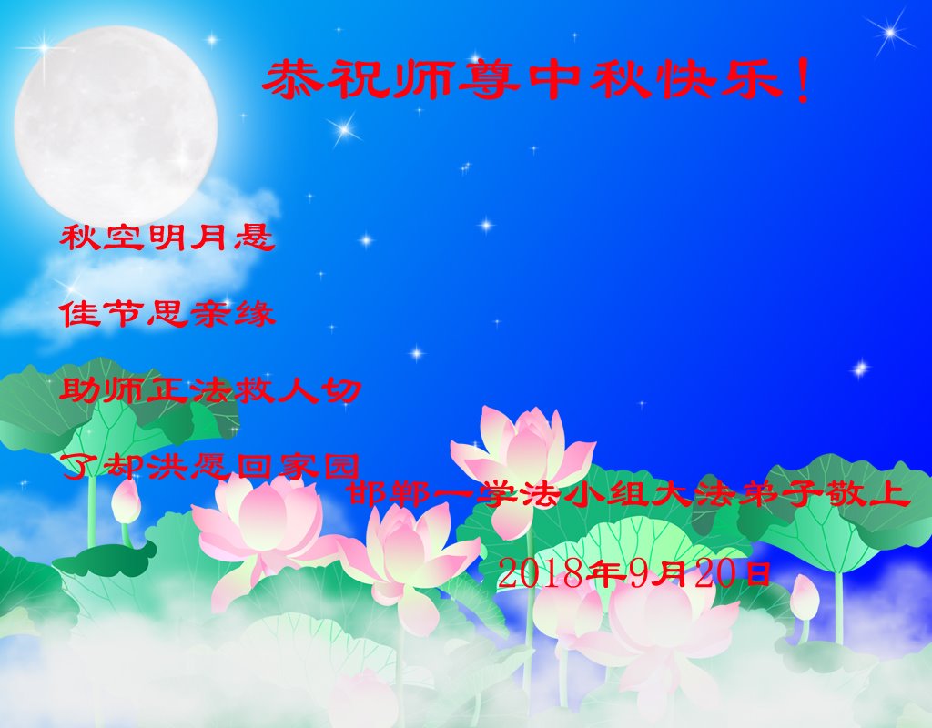 <英文版: http://en.minghui.org/html/articles/2018/9/24/172263.html>美国17州大法弟子恭祝师尊中秋快乐