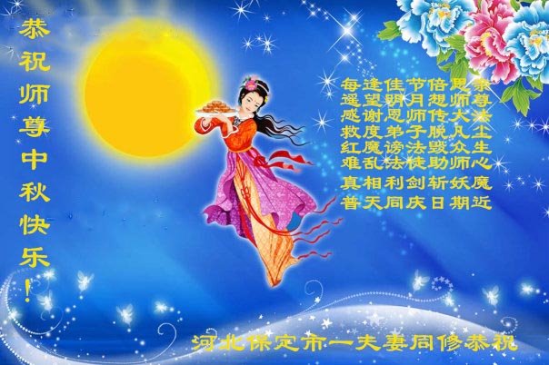 一年一度的中秋佳节来临了!法国大法弟子在这个敬谢神恩的传统节日里向师尊问好!恭祝慈悲伟大的师父中秋快乐!无尽感恩师父的慈悲苦度!