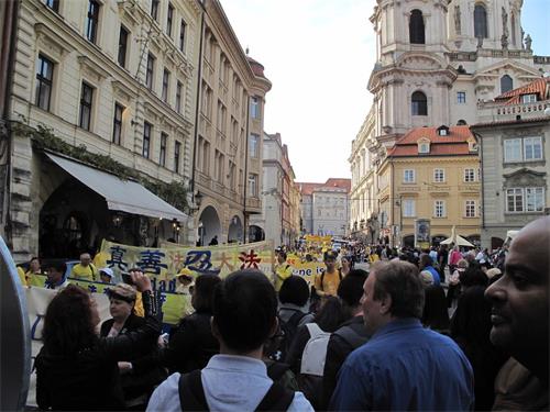 布拉格大游行 各国游客支持法轮功反迫害(图)