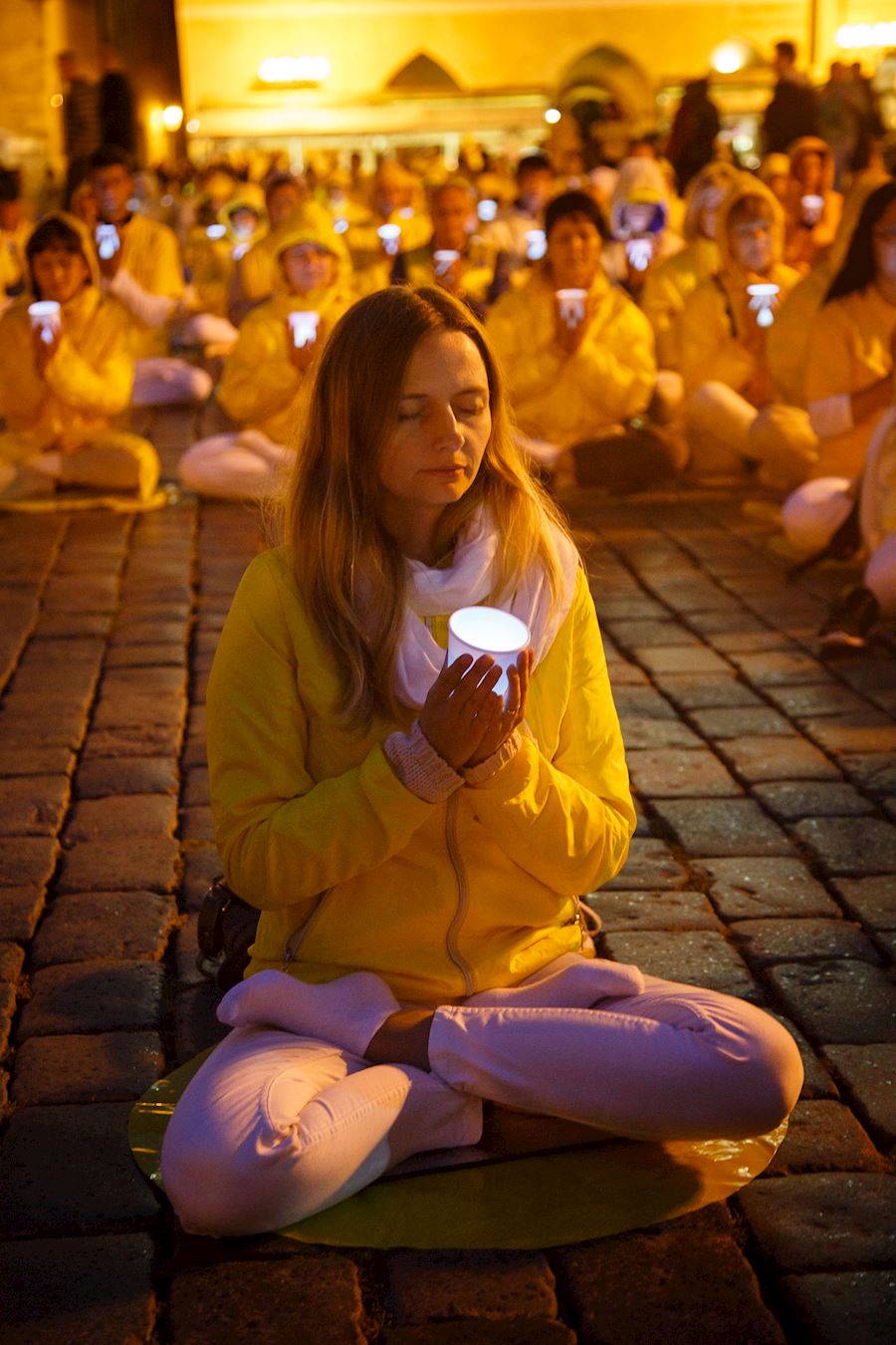 ![]() 图13:(从左到右)以色列留学生林恩·博尓任(Lyn Boaron)、丹尼尔·奥伦(Daniel Oren)、本雅明·艾森贝格(Binyamin Aizenberg)和哈达斯·萨吉克(Hadas Sagik)很高兴看到来自欧洲的法轮功学员举办的烛光晚会。 |