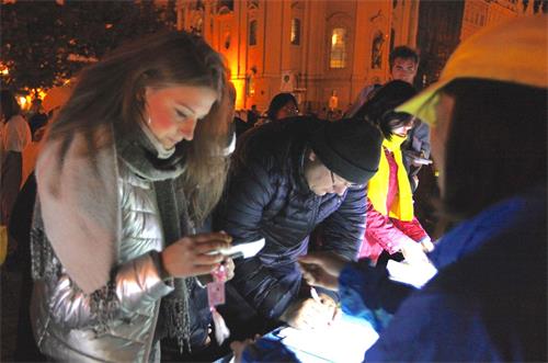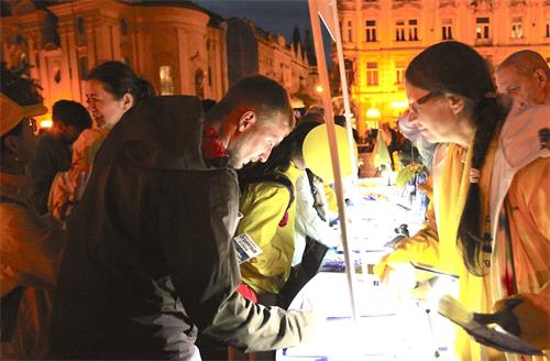 由于所要资料的人太多,当活动快接近尾声时,捷克法轮功学员为几天的大型活动准备的所有捷克文的资料全部告罄,当地民众只好索要其它包括英文、德文在内的其他语言的相关资料。