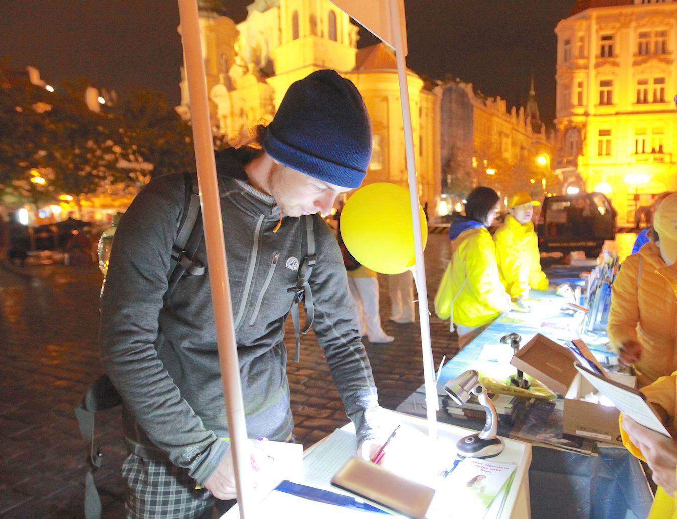 学信息科技的捷克大学生简·米克尔(Jan Mikel)正好在布拉格旅游,遇到了法轮功学员在此举办活动,他表示,之前从未听说过法轮功,“我以前听说过在中国有一些不好的事情发生,但我不知道具体的事例。今天听到这些(迫害事实),我想告诉人们我反对这个迫害。”