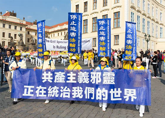 法轮功学员在布拉格游行 各国游客声援反迫害(图)