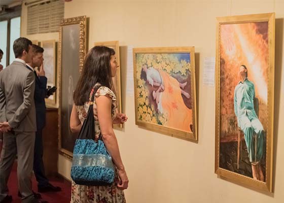 七月二日至二十二日,尽管面临中共大使馆的阻挠,法轮功学员在保加利亚首都索非亚的音乐大厅成功举办了真善忍美展。