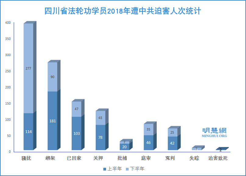 ![]() 图:四川省法轮功学员2018年遭中共迫害人次统计 |