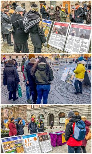 【明慧网二零一九年一月十三日】(明慧记者何平斯德哥尔摩报道)一位瑞典女士看过法轮功学员的真相展板后,对学员说:“中共迫害法轮功的事实真相我全都知道,而且我一直都在关注着这件事。”她是一位人权活动家,她告诉学员他们在三月初会有一次很大的关于人权的会议在斯德哥尔摩召开。揭露中共对法轮功的迫害也是会议上一个重要议题,临走时她拿走了一些关于中共活摘法轮功学员器官的传单并表示:“我们会与你们共同努力!”