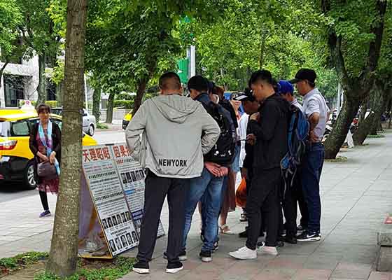 十月十日是中华民国国庆,在台北国父纪念馆的园区内,从十月十日起陆续有各种庆祝活动,法轮功学员也一如既往地在这里摆放真相展位,向民众弘法。