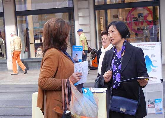十月十二日,瑞士法轮功学员,在日内瓦市中心的商业步行街向世人介绍法轮功真相,并揭露中共的残酷迫害,甚至活摘法轮功学员器官的反人类罪行。