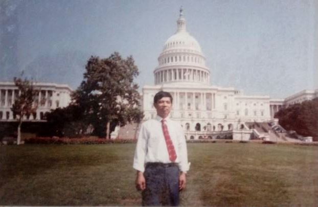 ![]() 1990年曹红如在美国国会山庄留影 |