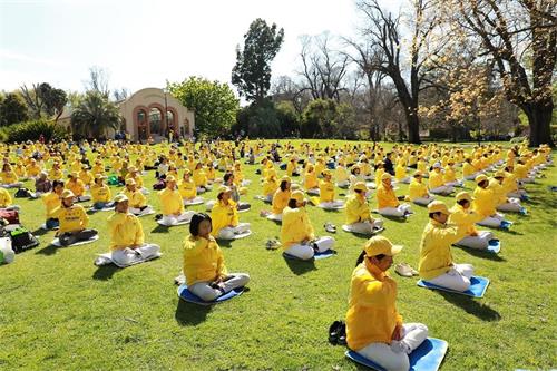 ![]() 图5:昆士兰州中医师、法轮功学员戴女士(前)在澳洲年度法会期间参加集体炼功。 |