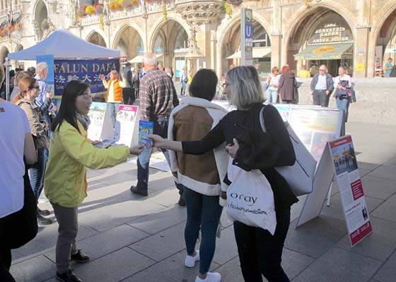 十月二十六日,德国法轮功学员在慕尼黑玛琳广场举办了信息日活动,旨在告诉德国民众和游客,法轮功弘传世界,世界需要真善忍。
