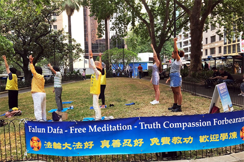 【明慧网二零一九年十二月三日】(明慧悉尼记者站报道)二零一九年十月二十五日至十一月二十九日的每周五下午,法轮功学员在澳洲悉尼最繁华的商务区域之一的温亚德公园(Wynyard Park)设法轮大法真相展位并展示法轮大法五套功法。在此活动期间,法轮功学员向过往民众传递法轮大法真相资料和征签。此征签旨在呼吁澳洲总理、外交部长和澳洲政府帮助停止中共对法轮功长达二十年的残酷迫害;停止中共强摘法轮功学员及良心犯的器官;拒发参与迫害法轮功的中国官员和警察的签证。学员的传真相活动受到澳洲民众赞赏和支持,很多民众表示:澳洲政府对法轮功的支持和立场很重要。