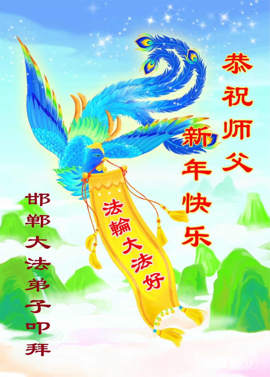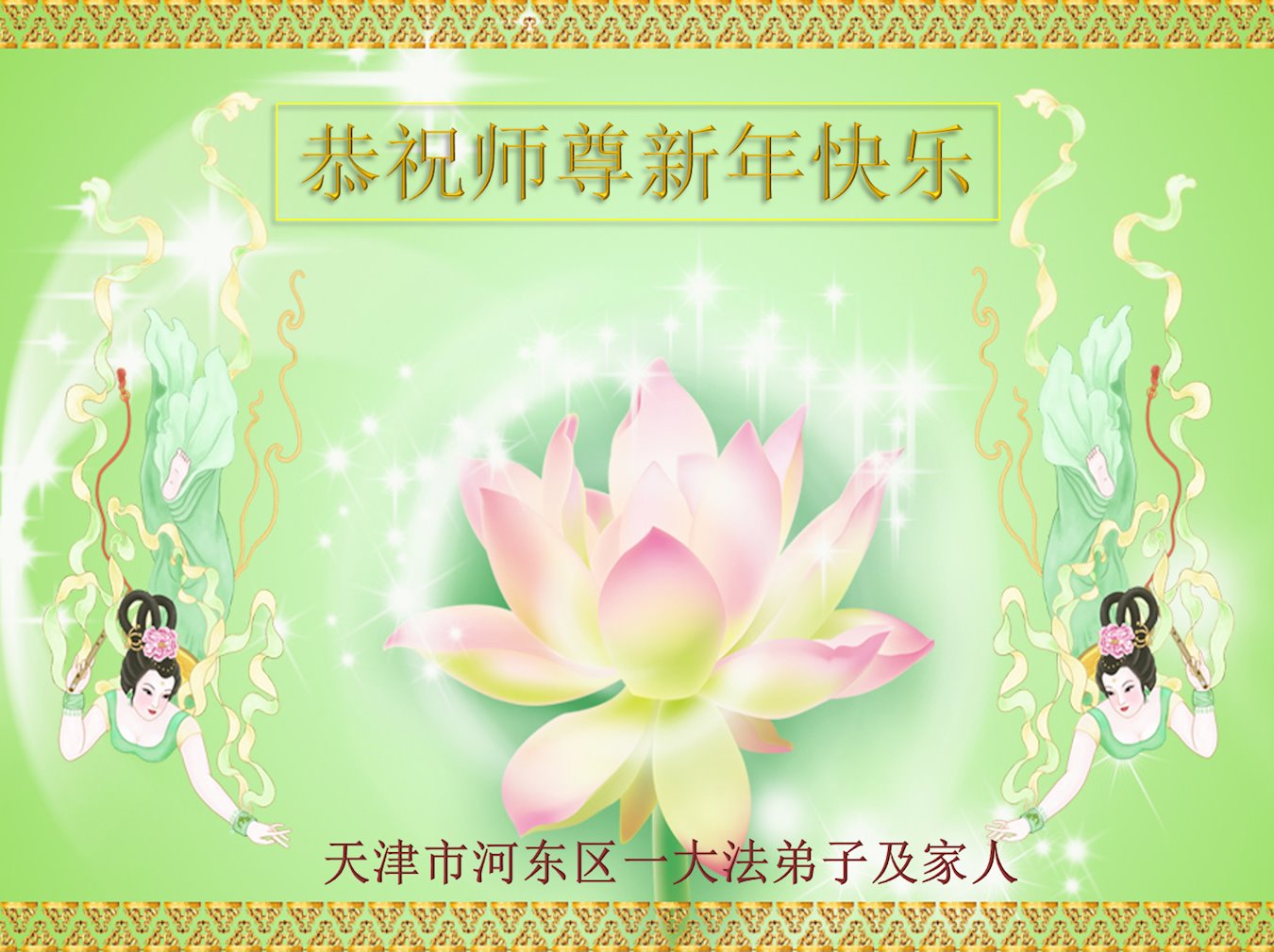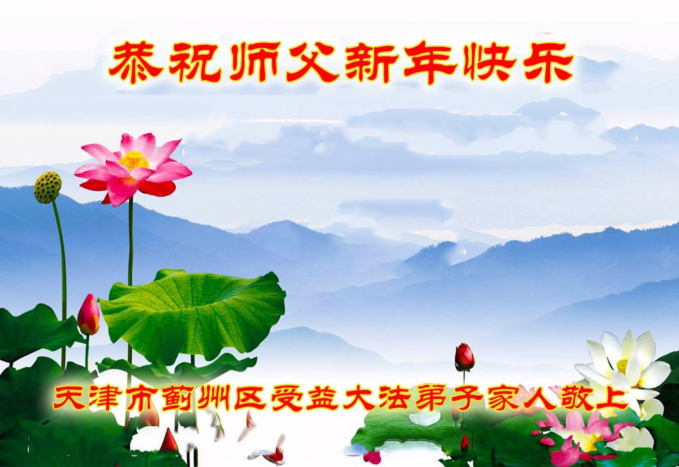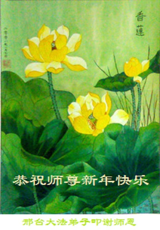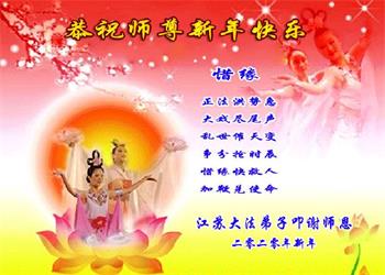 值此新年到来之际,我请大法弟子代我和我们全家人由衷的敬谢大法师父的恩德,祝愿大师新年快乐!