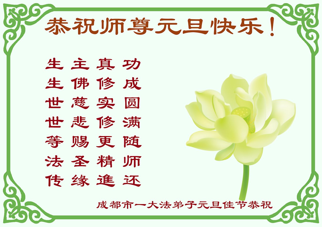 在新年到来之际,我们重庆市教育界全体大法弟子怀着无比感恩的心情,祝我们慈悲伟大的师父新年快乐!