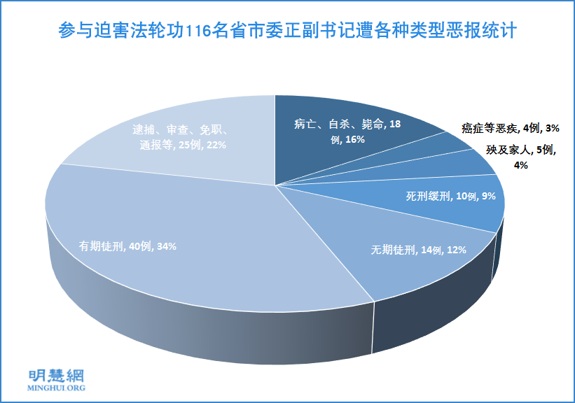 图:参与迫害法轮功116名省市委正副书记遭各种类型恶报统计