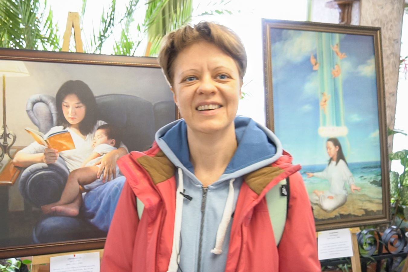 和母亲一起来休假的亚历山德拉(Alexandra)说:“这个展览的独特让我很喜欢,我第一次看到。我和母亲来自哈萨克斯坦,(在画展上)看到和听到的让我感到内心的和谐。我喜欢这张画——‘我是谁?’因为我也在寻找自己,在画中我也看到了自己。究竟我是谁,为什么我来到了这个世界,我带给人们的是什么?”